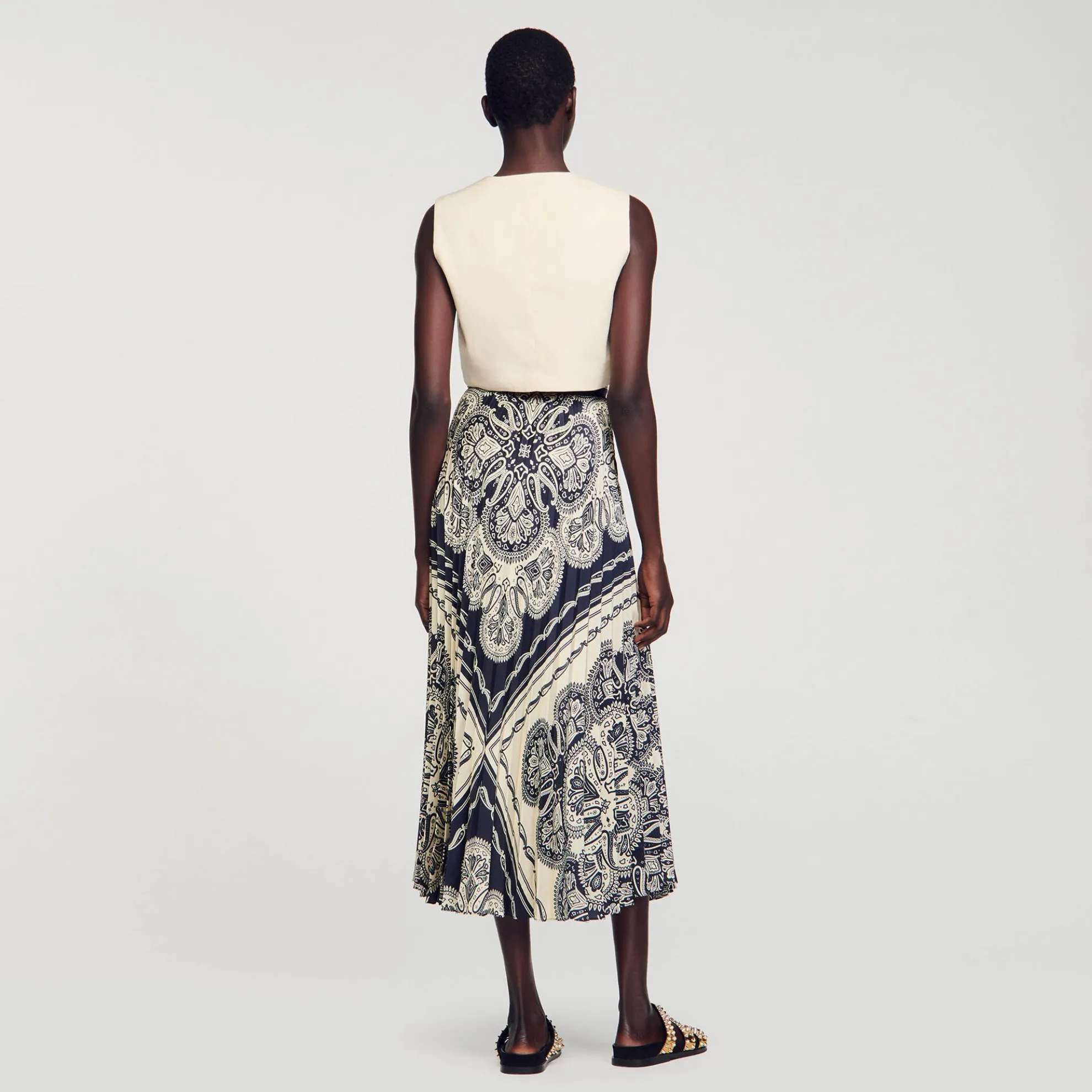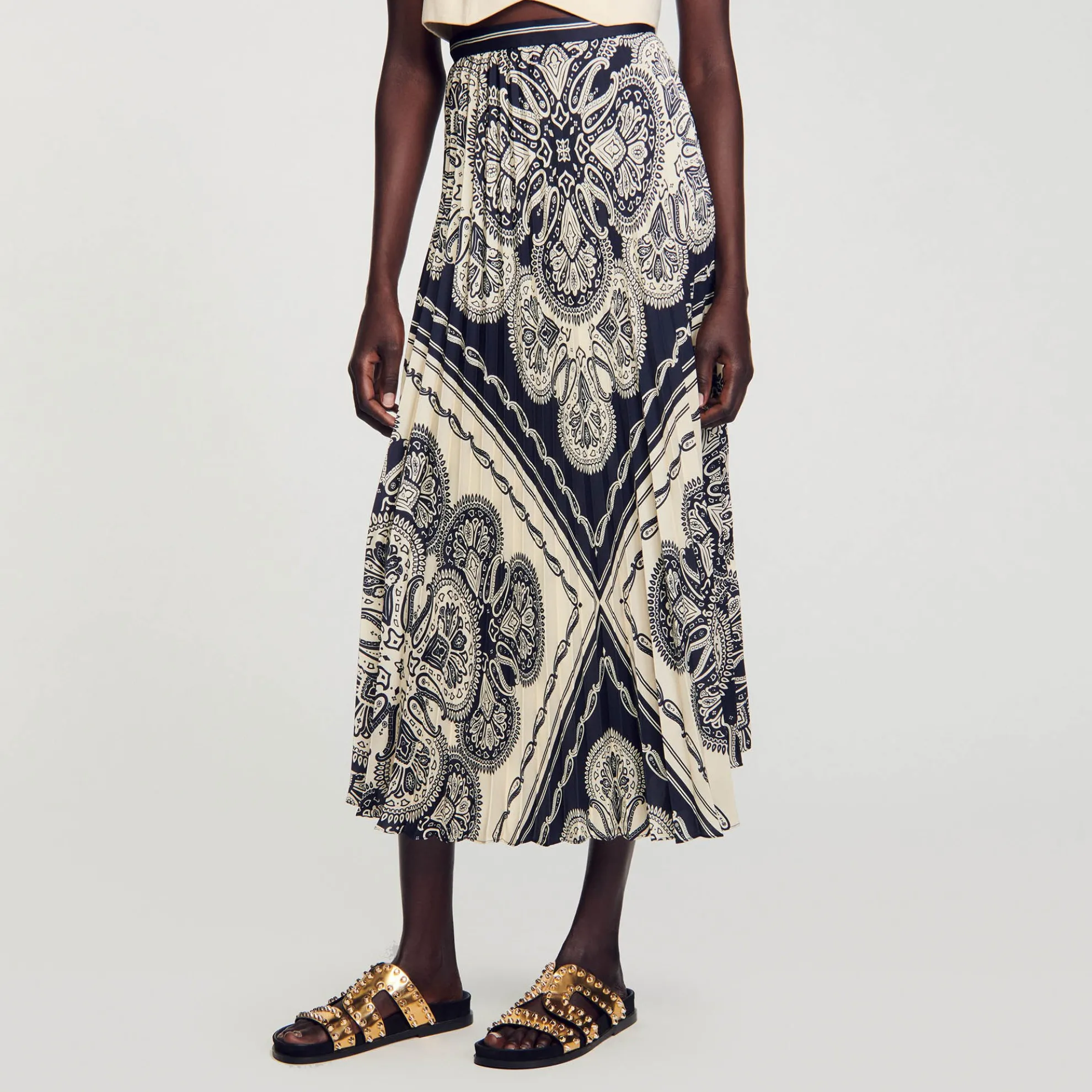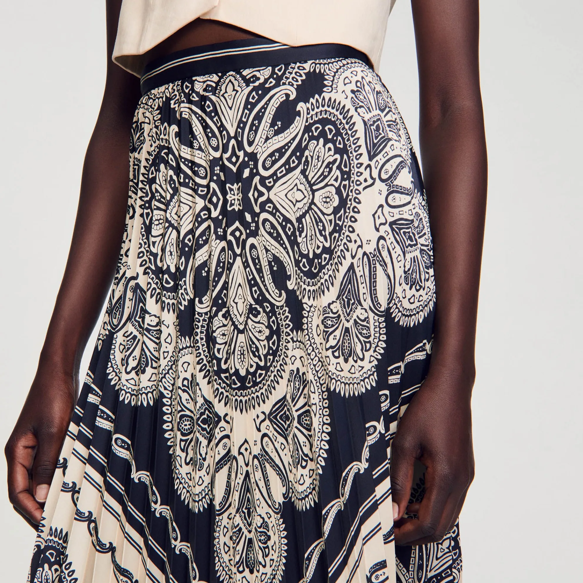 Soepele, geplooide lange rok met ‘Henne Bandana’-print en ritssluiting.