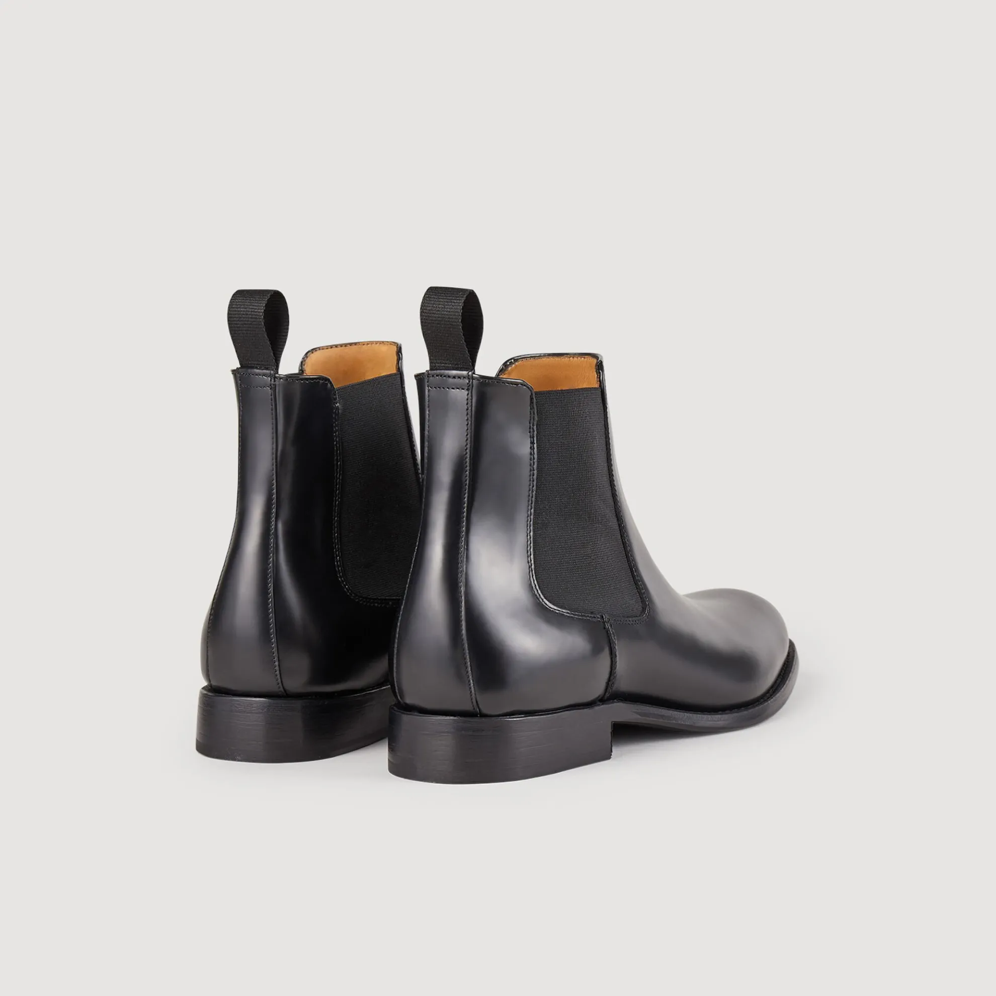 Chelsea enkellaarsjes van glad leer voorzien van elastische inzetten aan de zijkanten en een leren zool.