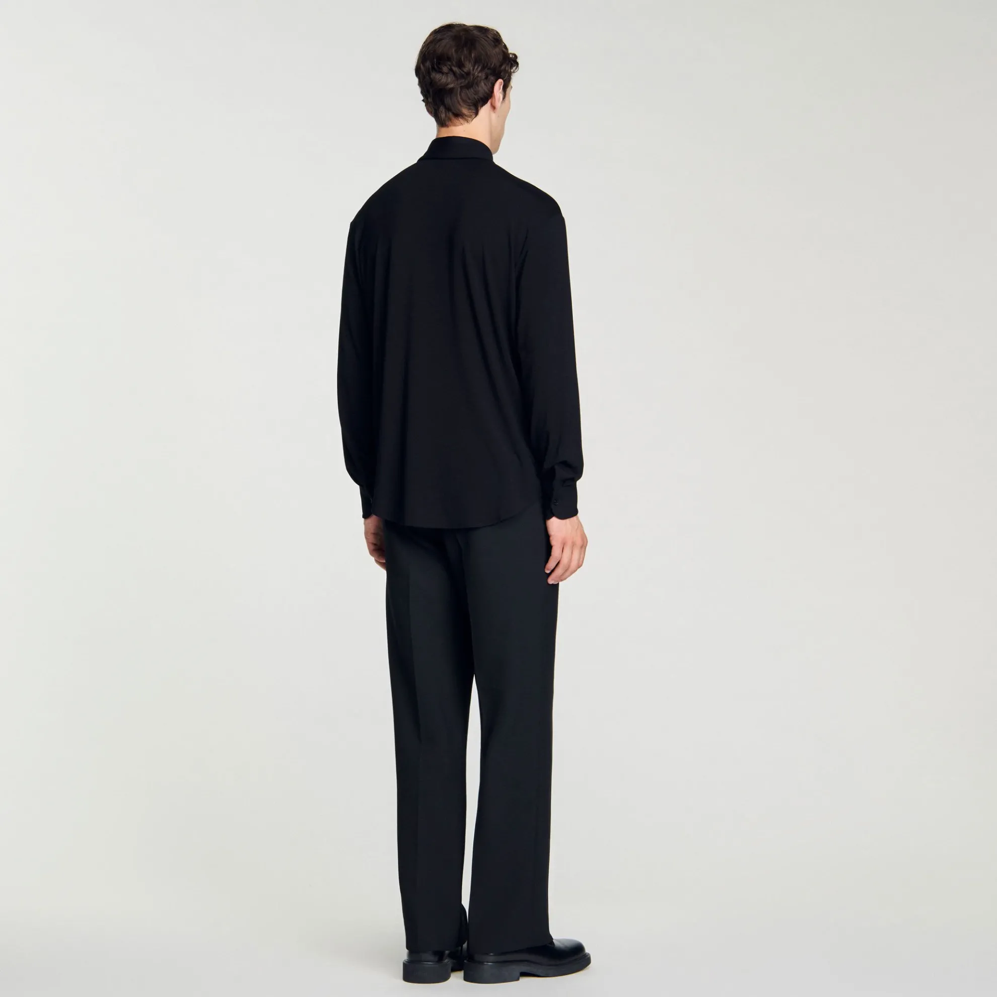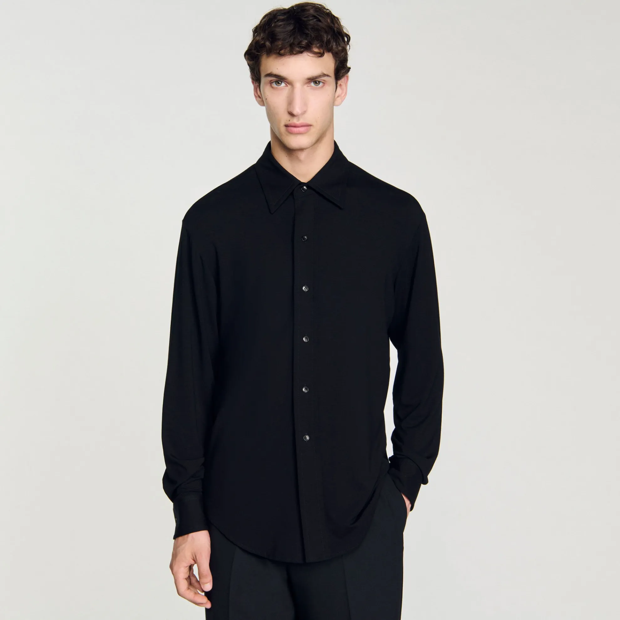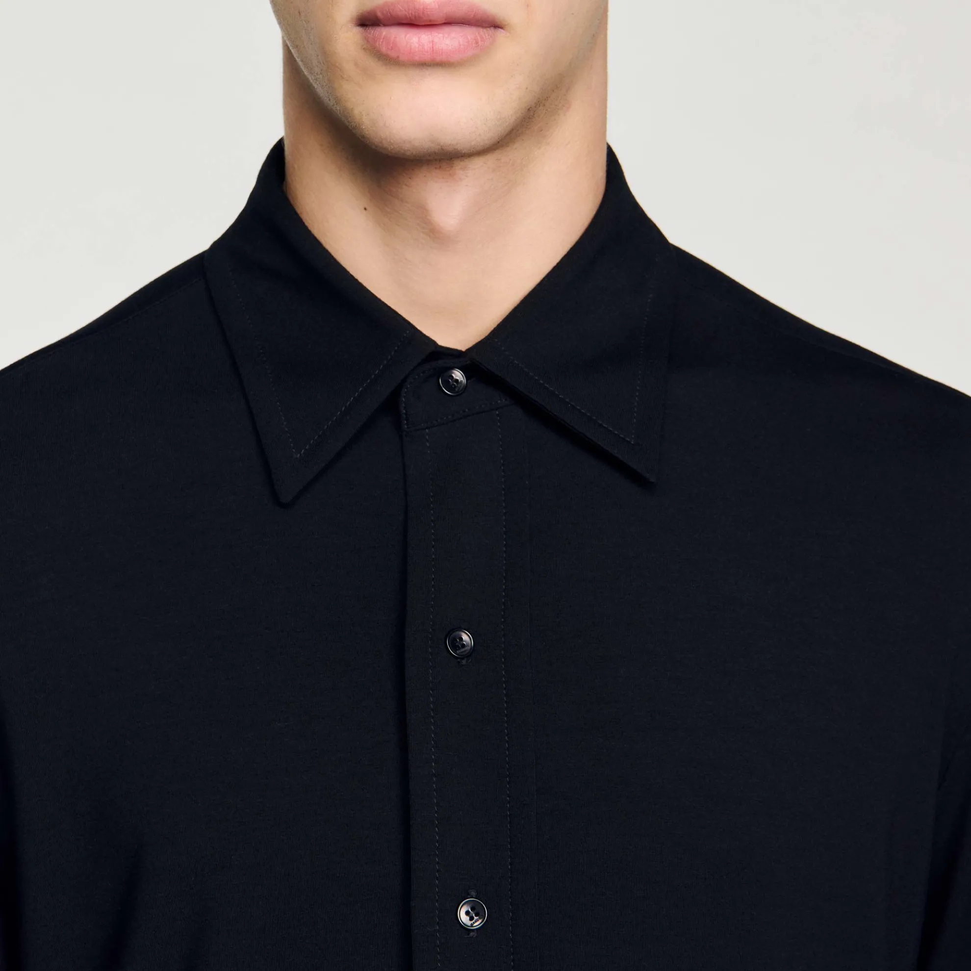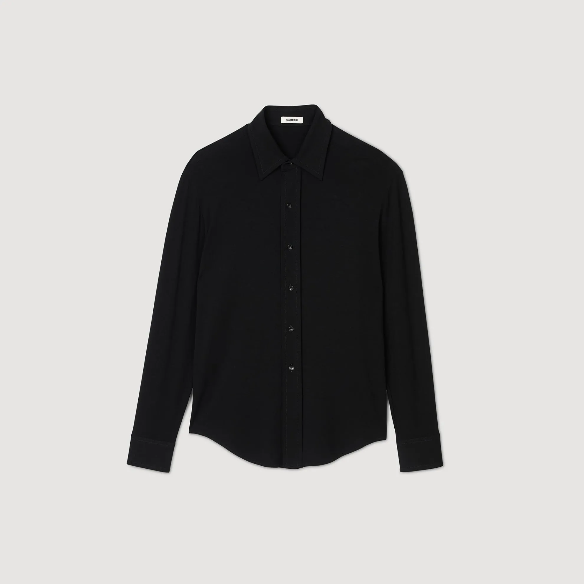 Soepel overhemd van jersey stof met lange mouwen met knoopmanchetten, klassieke overhemdkraag en knoopsluiting.