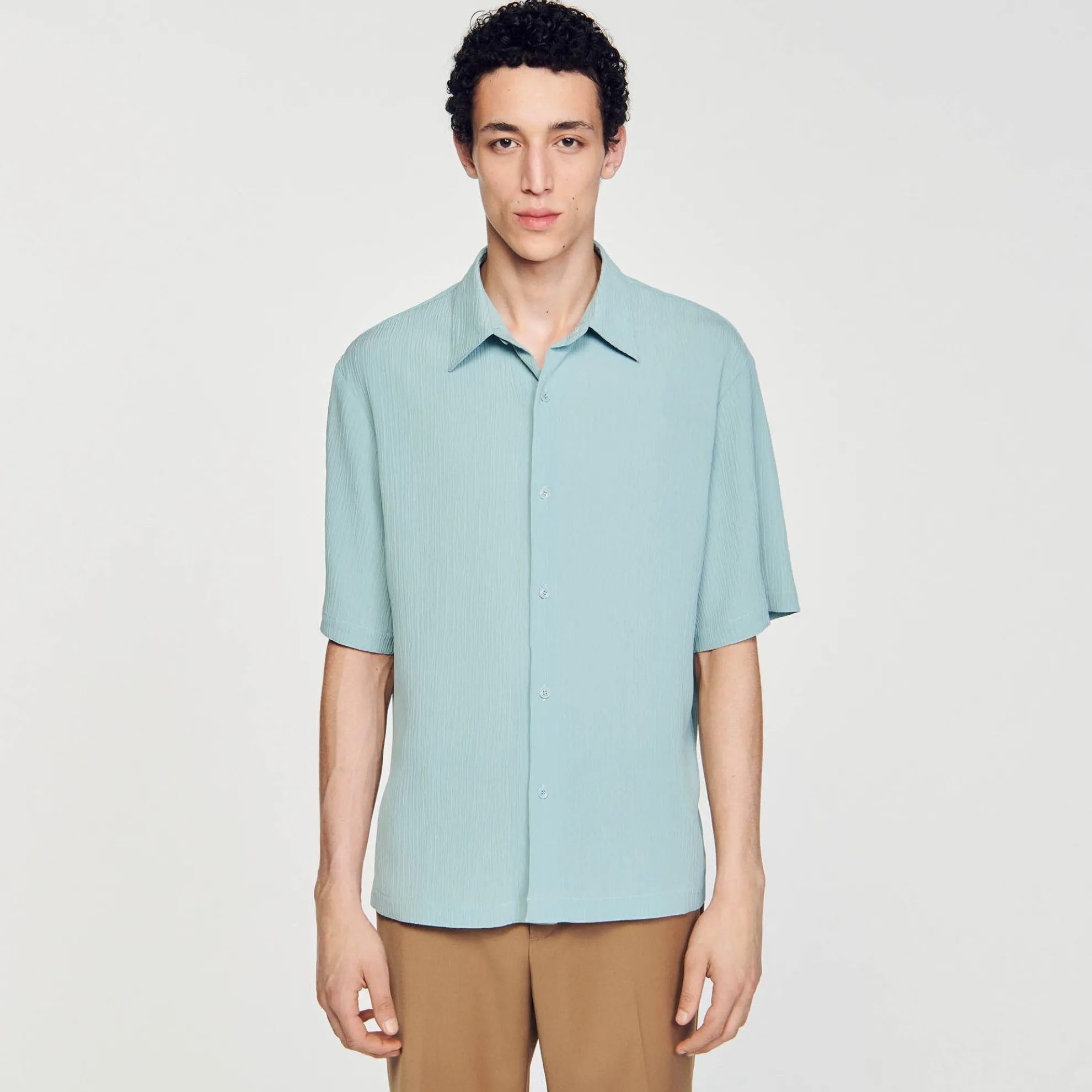 Soepel en oversized overhemd van geplooide stof met een klassieke kraag, korte mouwen en knoopsluiting.