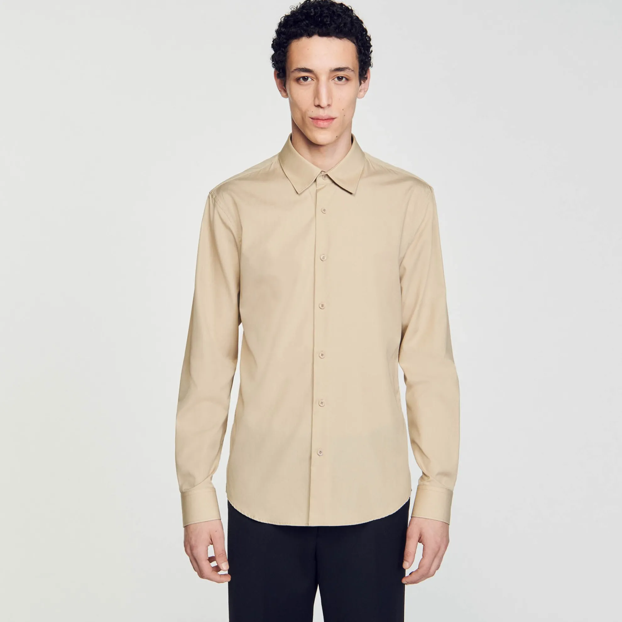 Overhemd met lange mouwen, klassieke kraag en knoopsluiting.