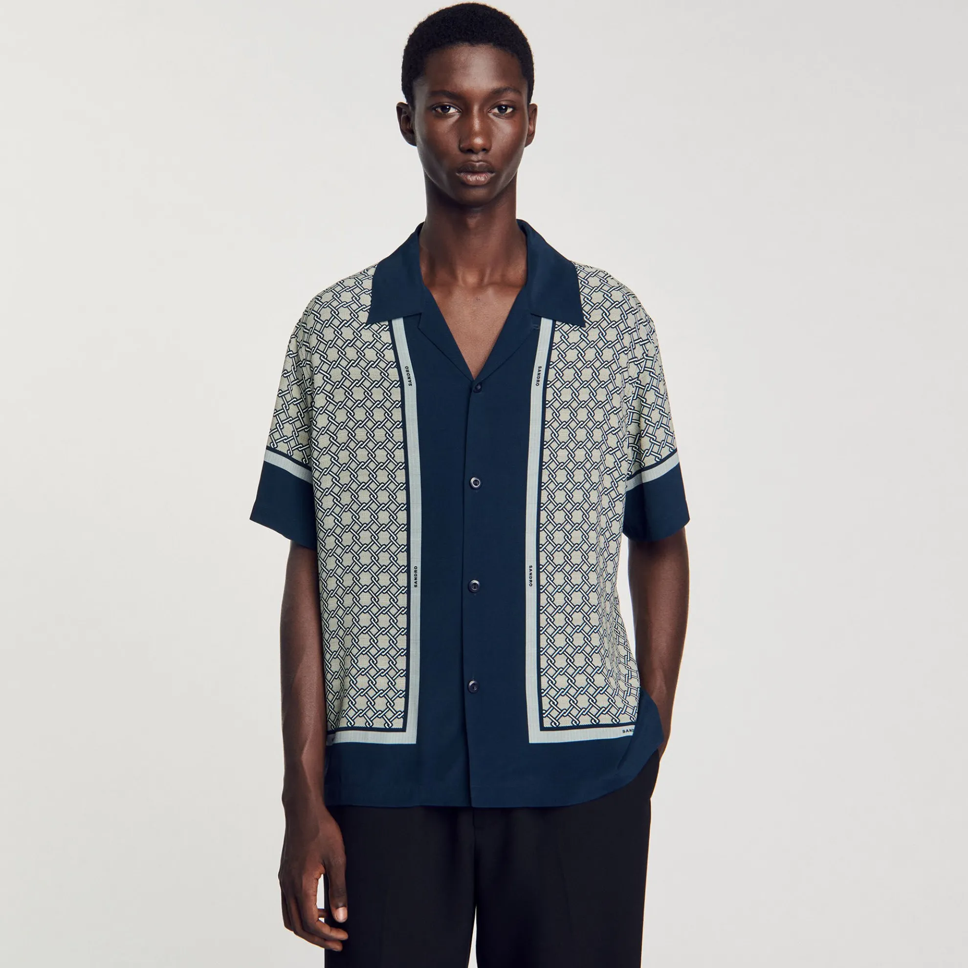 Overhemd met korte mouwen, een haaienkraag met knoopsluiting en een Cross print.