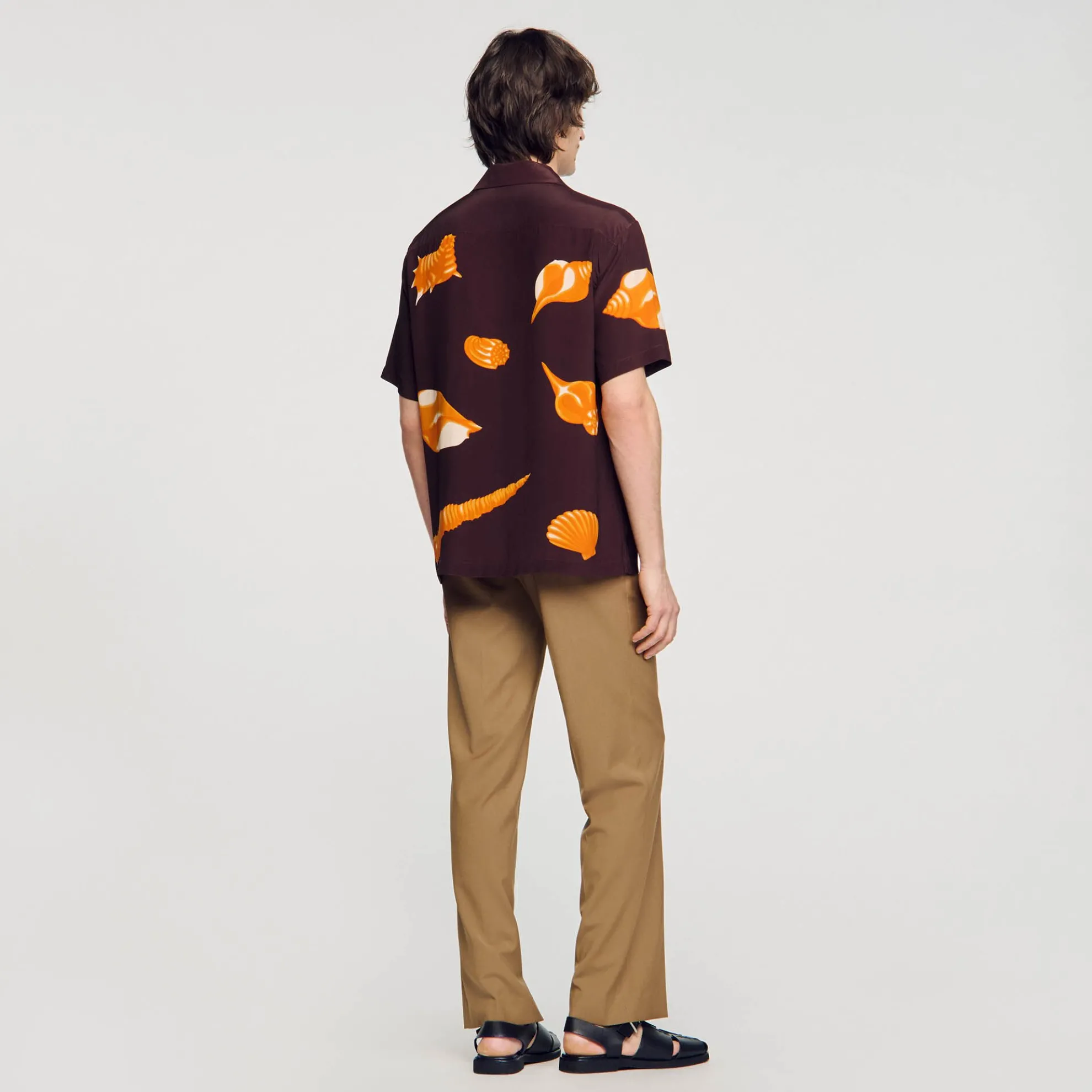 Overhemd met korte mouwen, een haaienkraag met knoopsluiting en een schelpenprint.