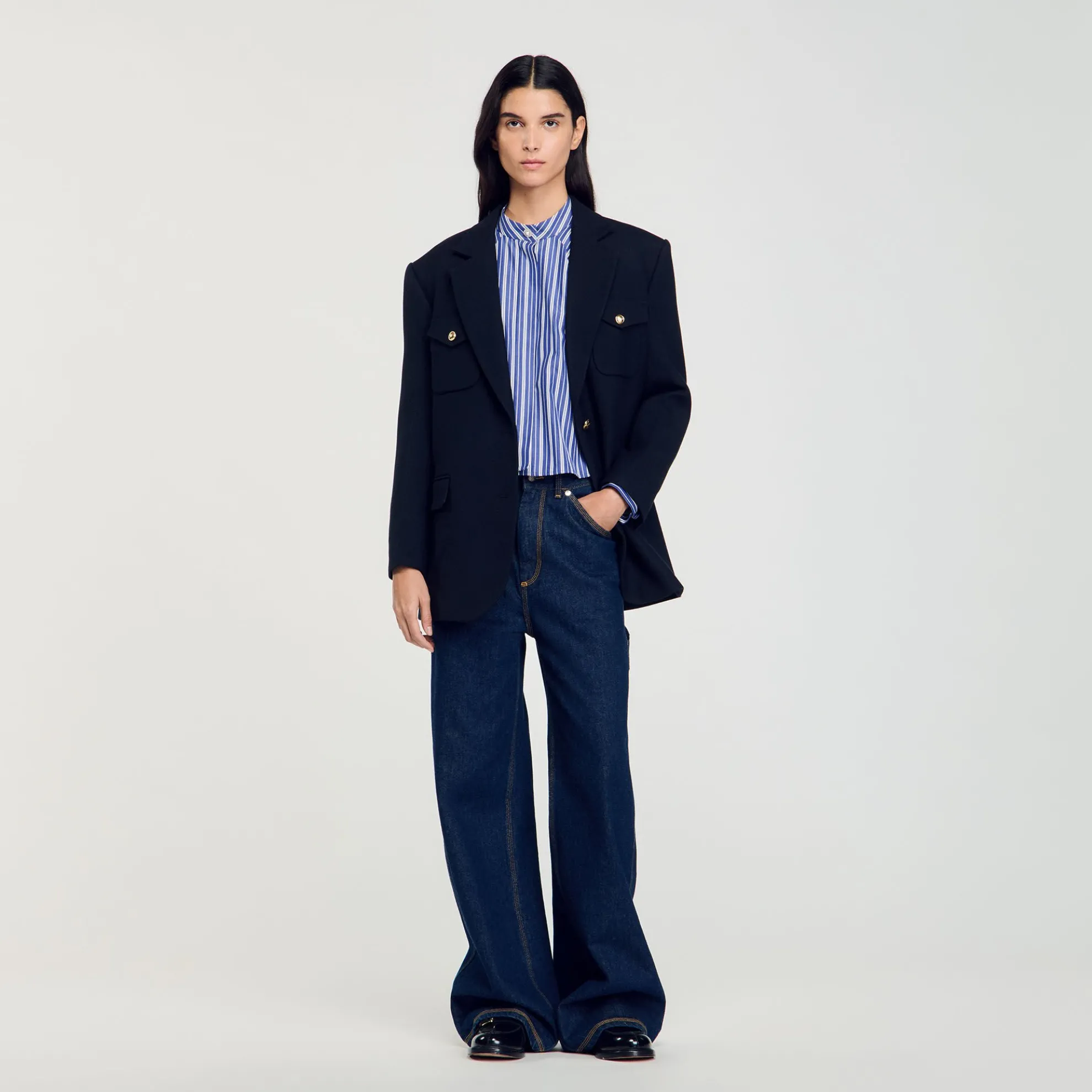 - Kort gestreept overhemd Sandro Dames