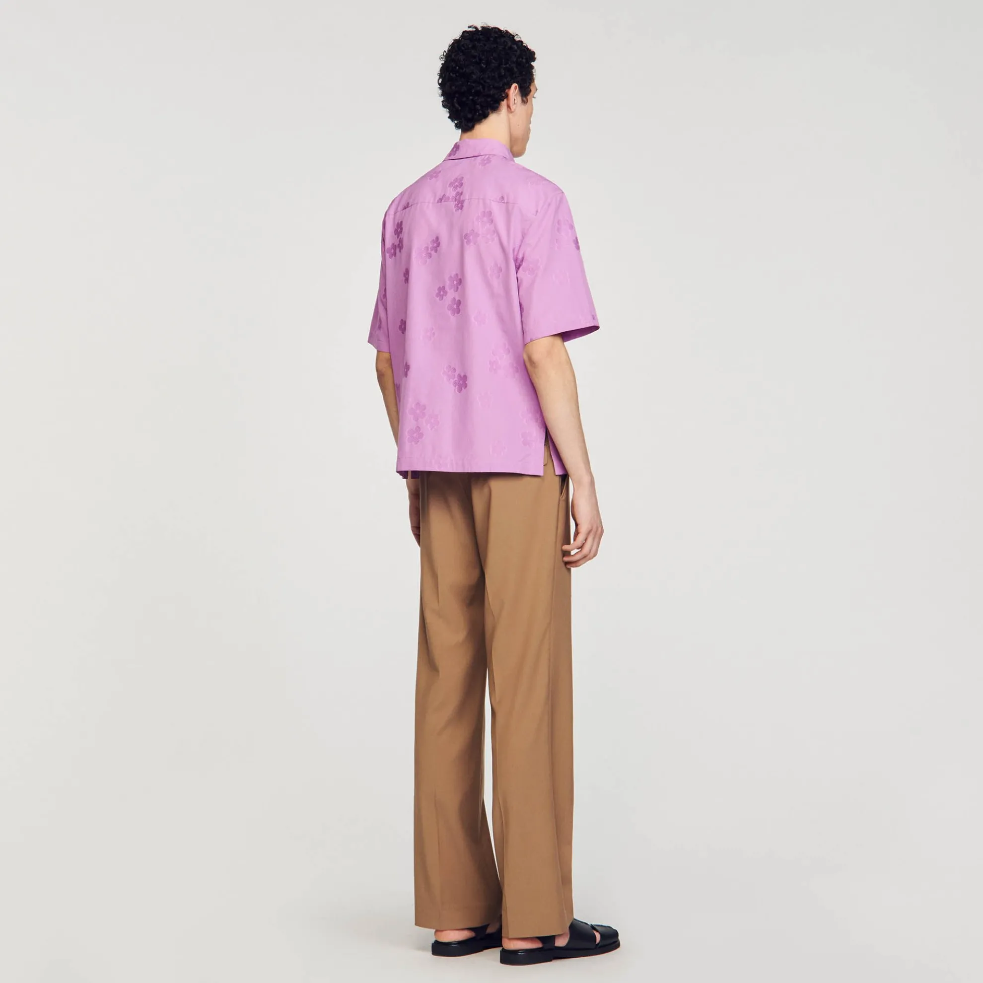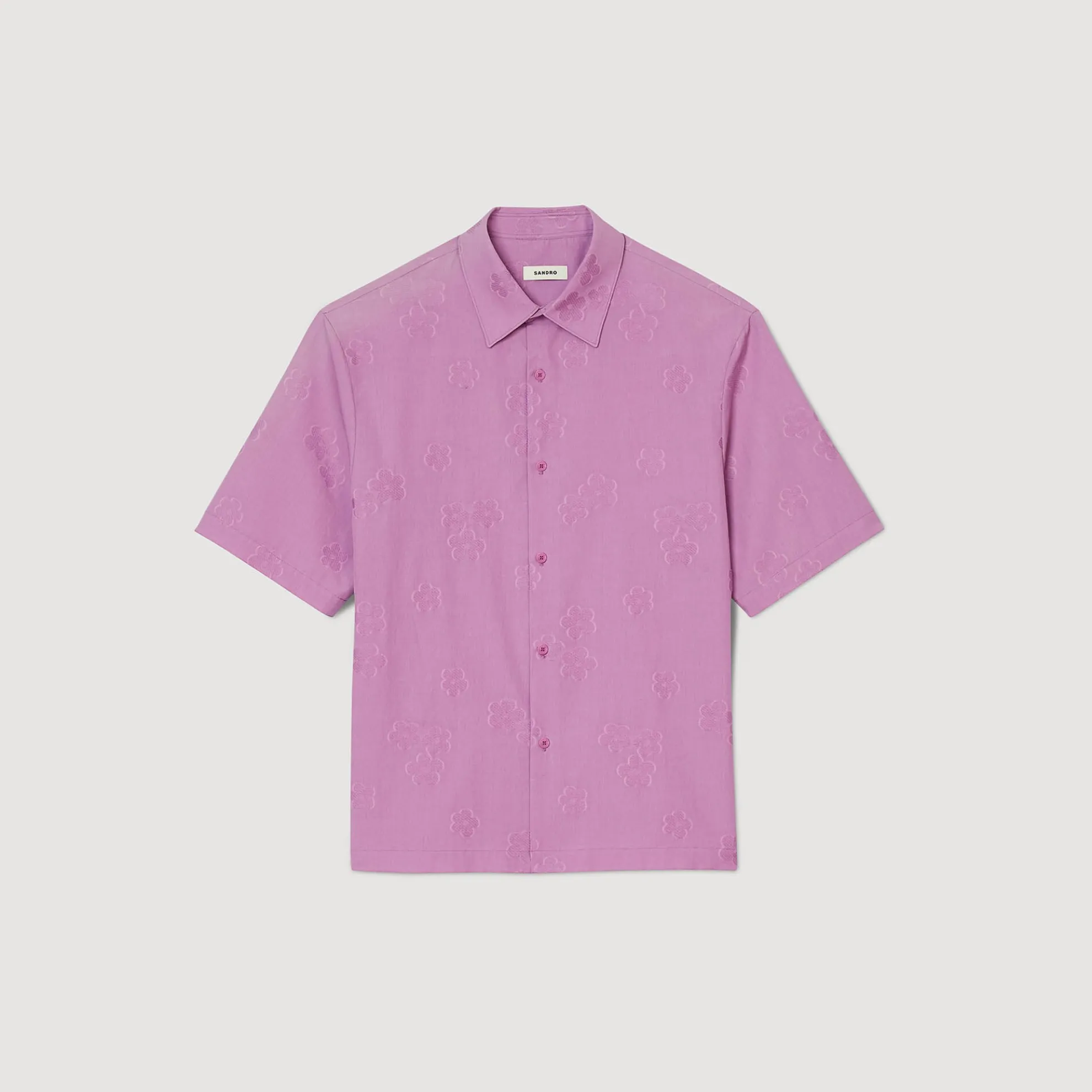 Oversized katoenen overhemd met jacquard met bloemmotief, overhemdkraag, korte mouwen en knoopsluiting.