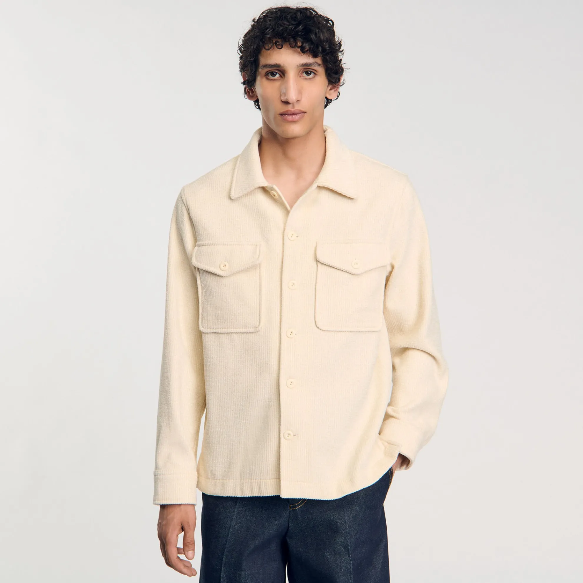 Ribfluwelen overshirt voorzien van een klassieke kraag, lange mouwen met drukknopen, een drukknoopsluiting en klepzakken.