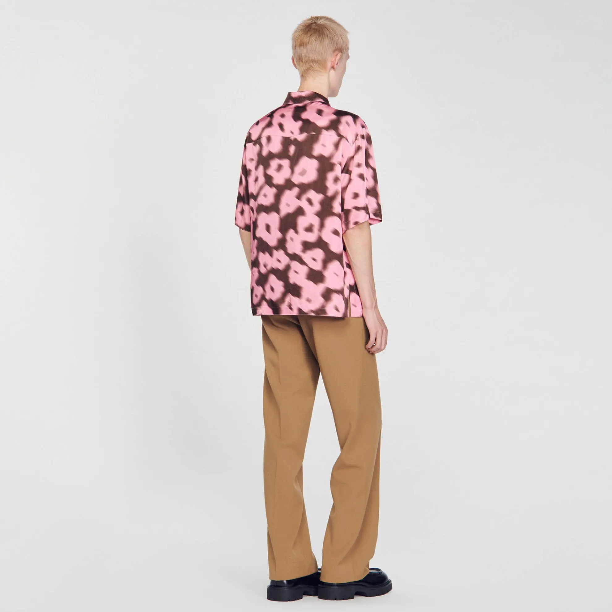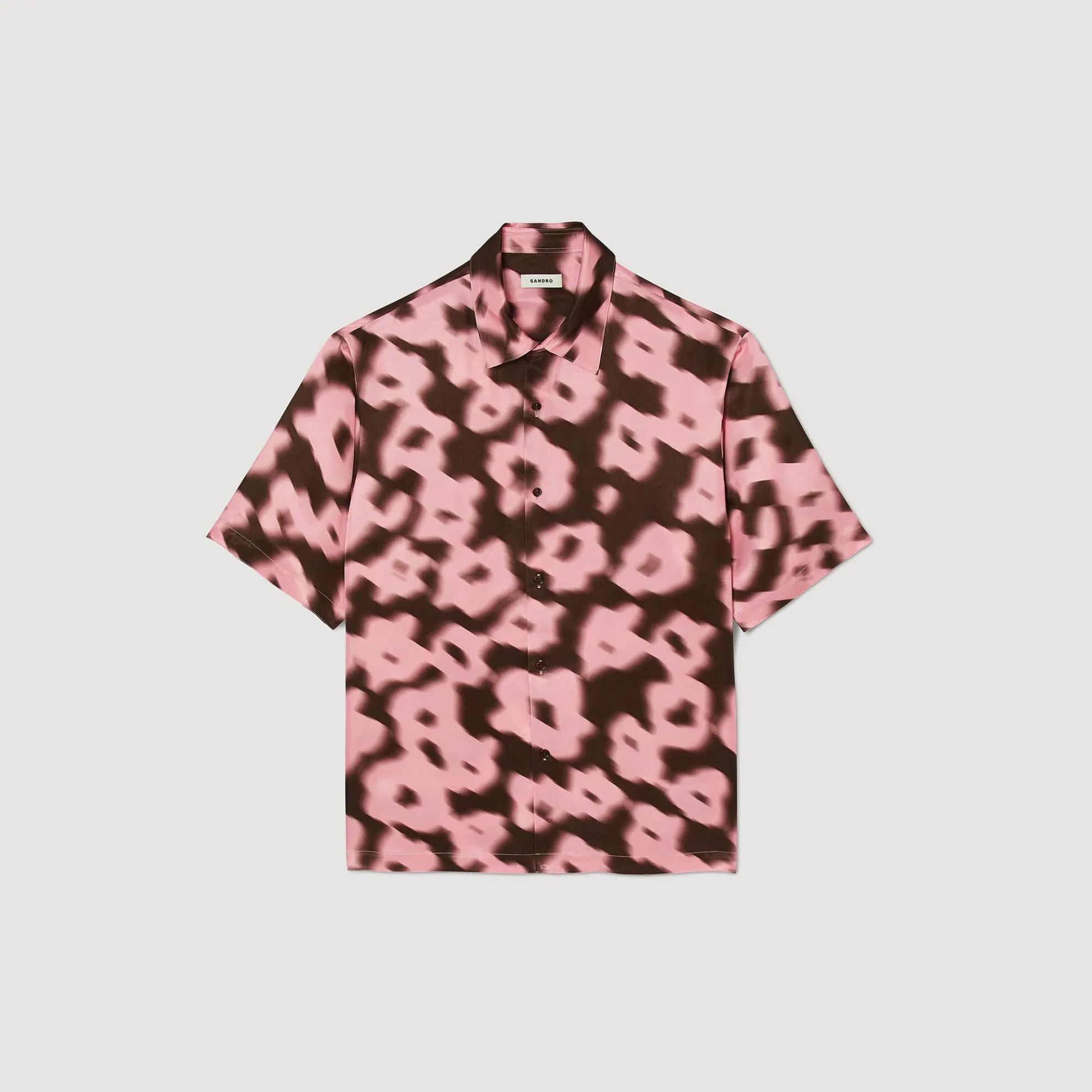 Oversized overhemd met vervaagde bloemenprint, opstaande kraag, knoopsluiting en korte mouwen.