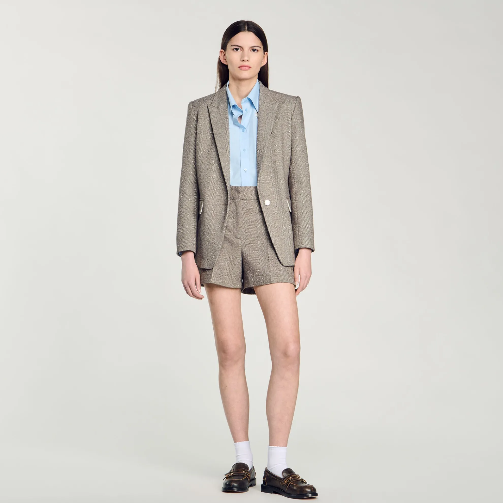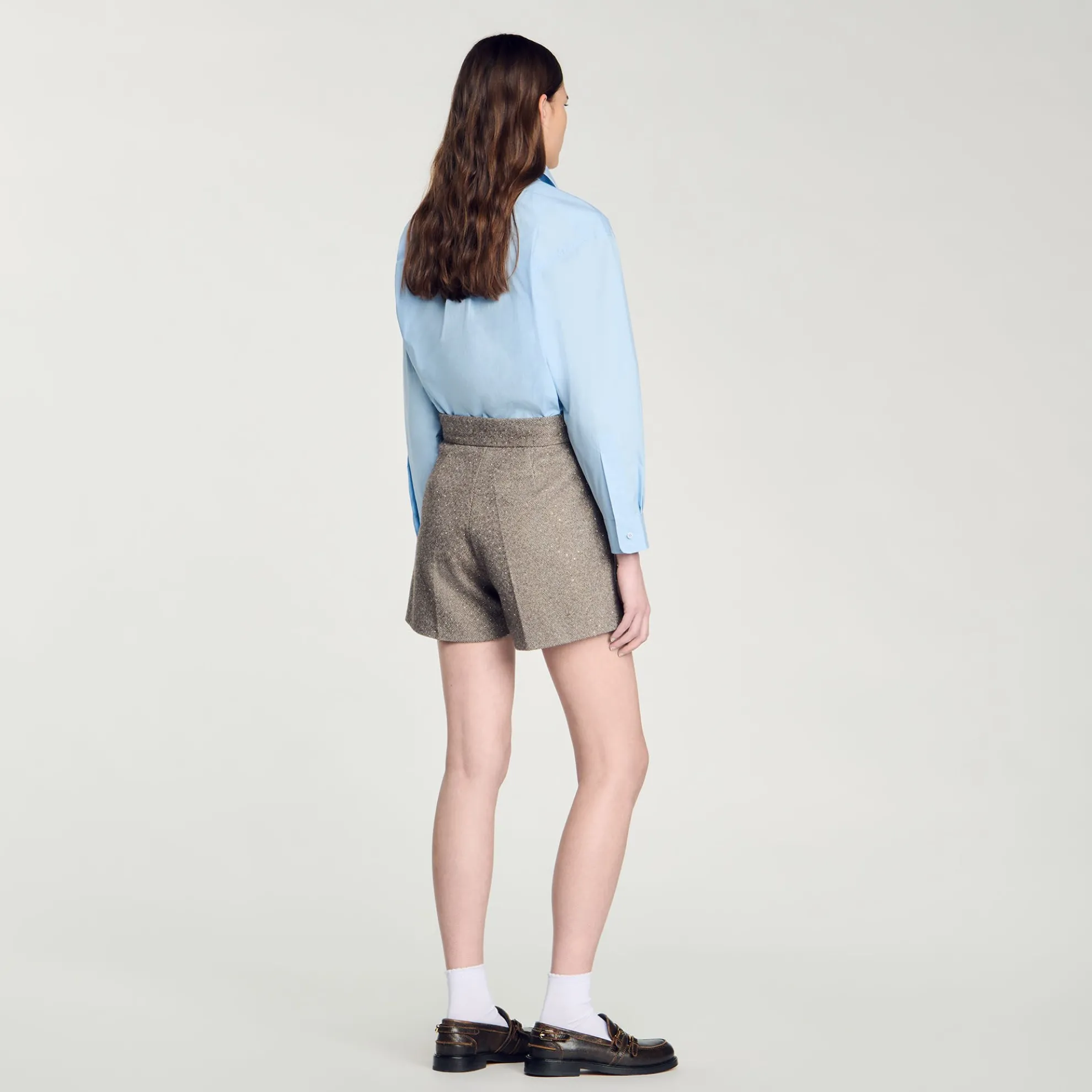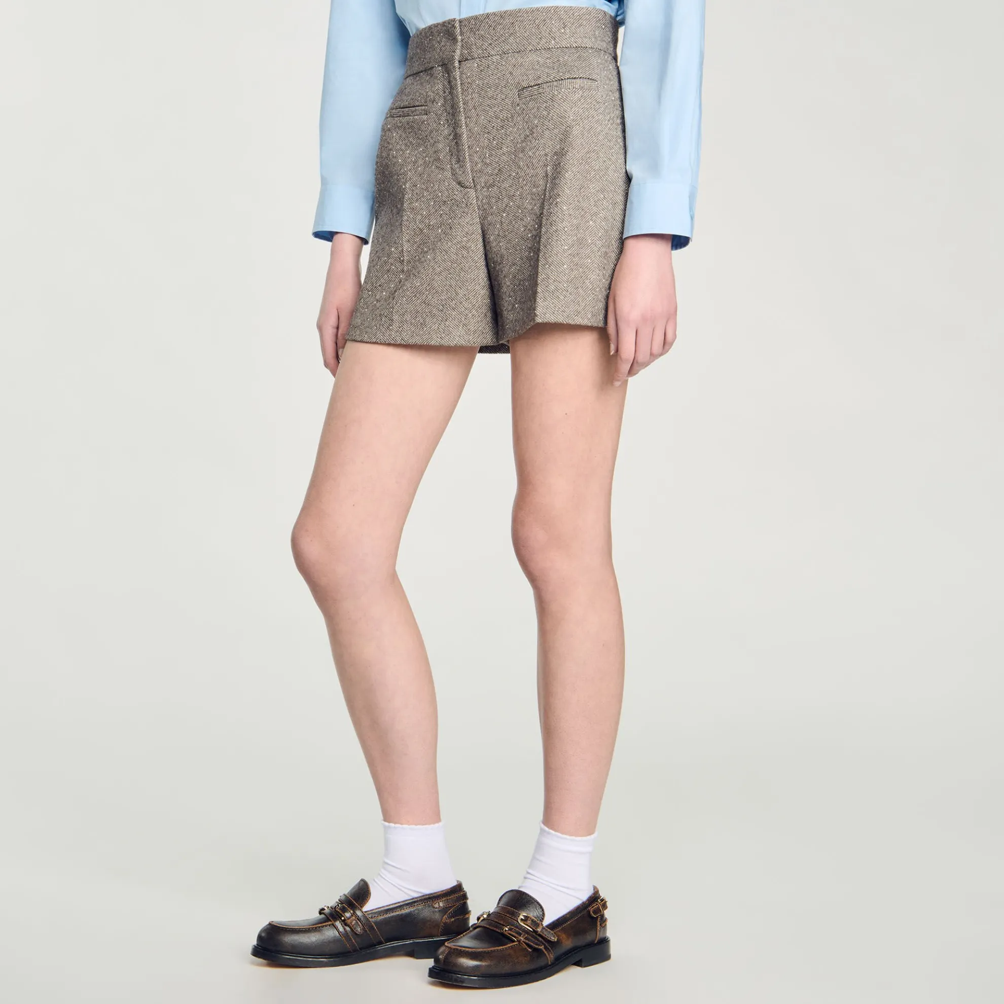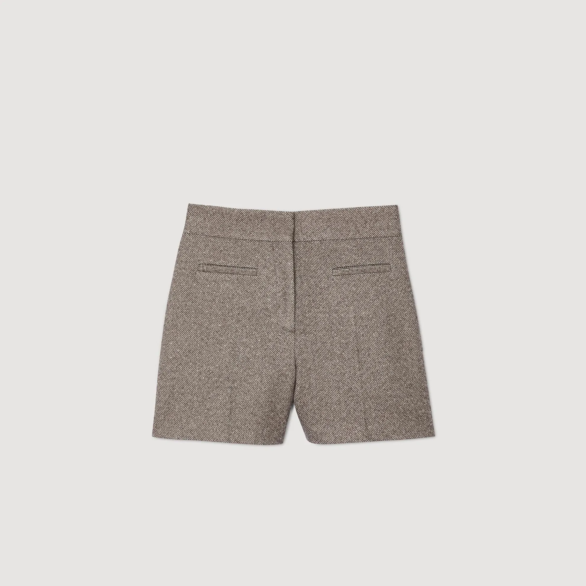 Short à motifs chevrons orné de studs muni de fausses poches passepoilées à la taille et d’une fermeture.