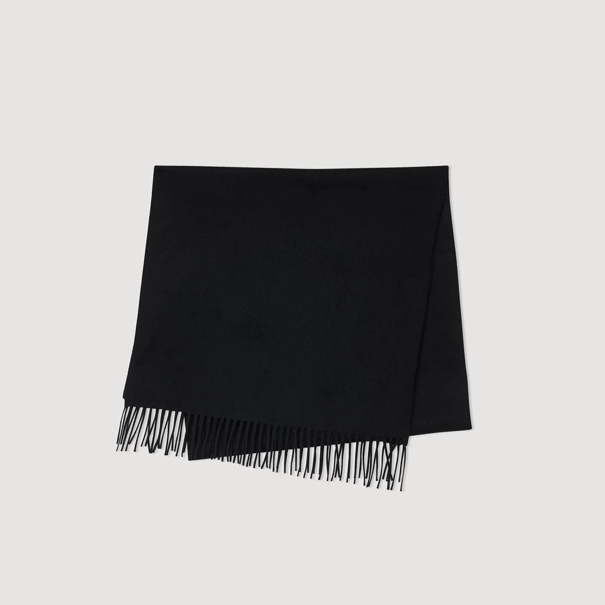Sjaal van wol en kasjmier met franjes en Sandro-label.
