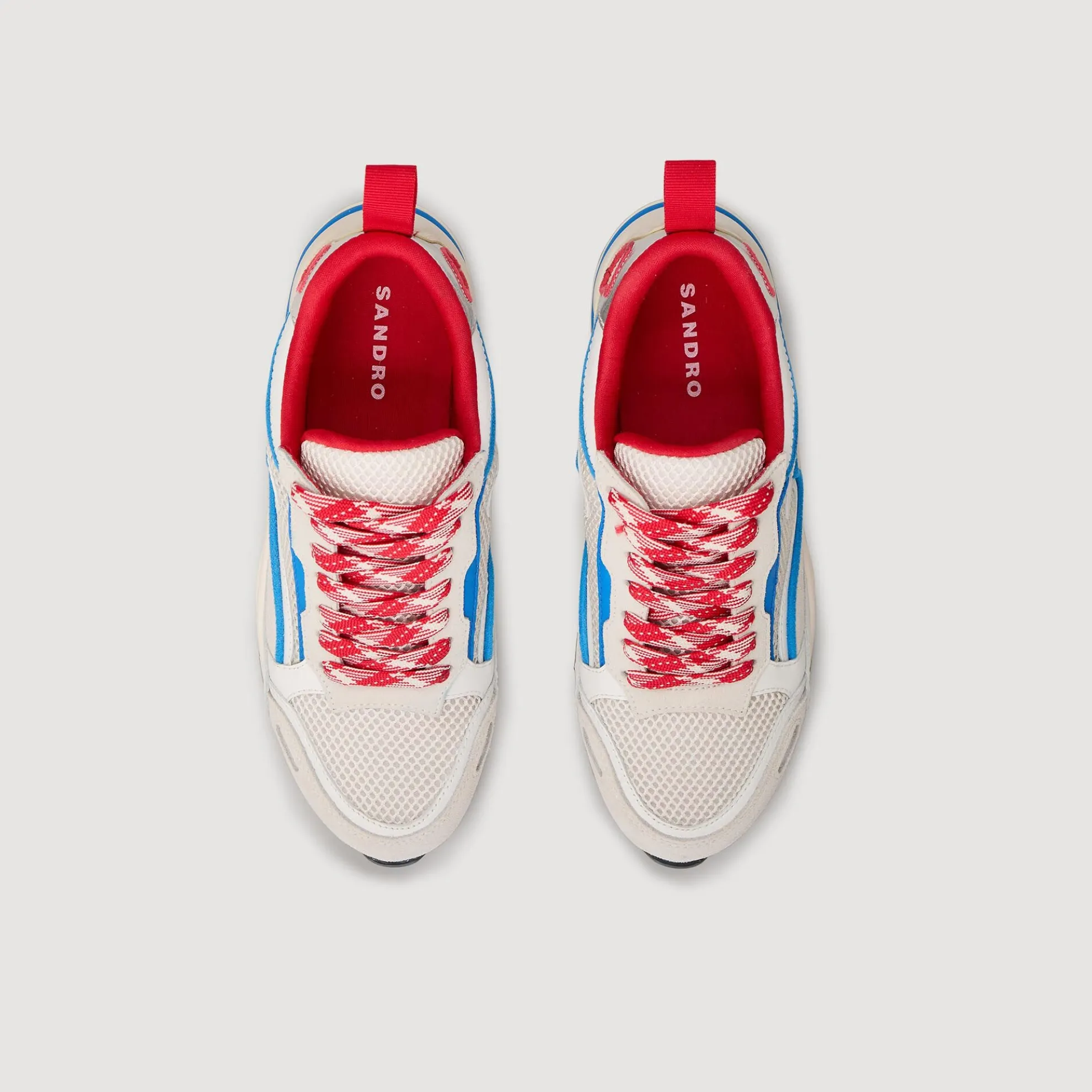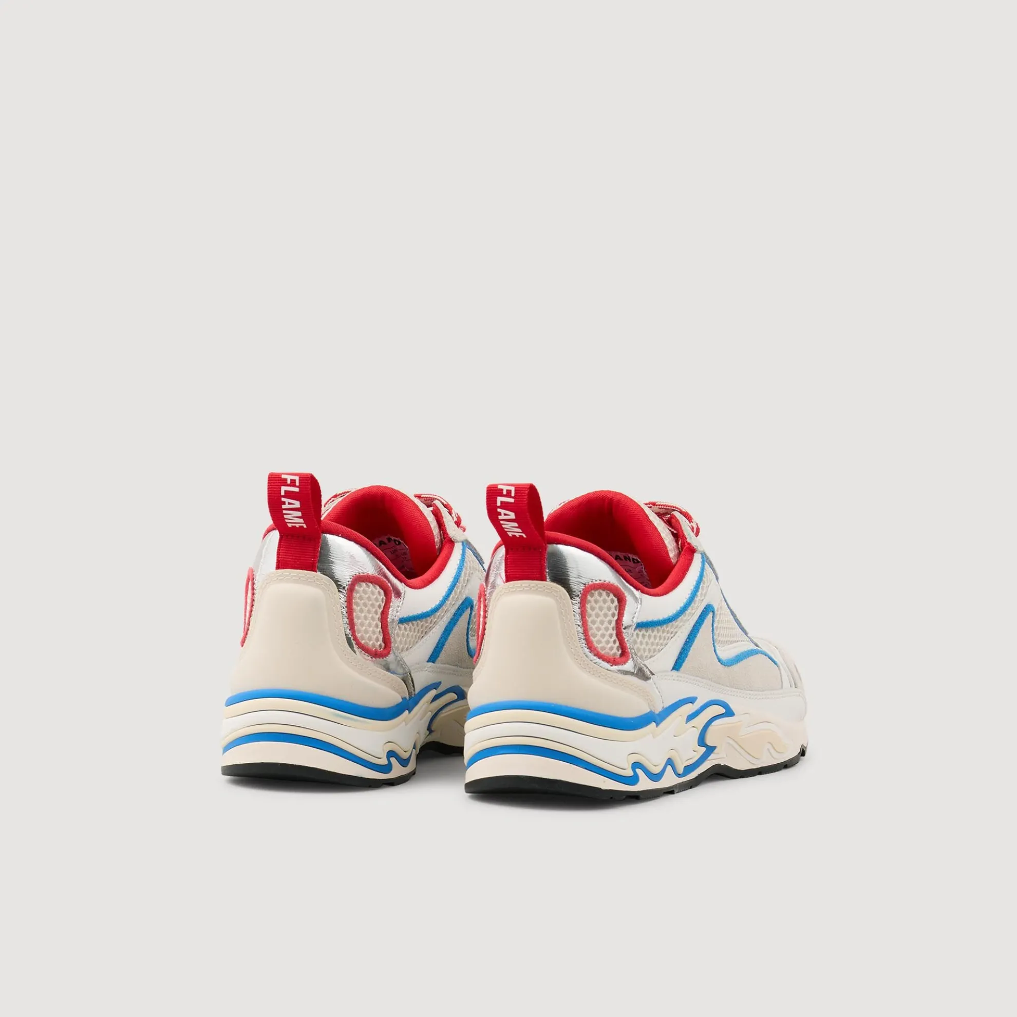 Sneakers van mix van leer met veters en een kenmerkende rubberen zool met vlammotief.