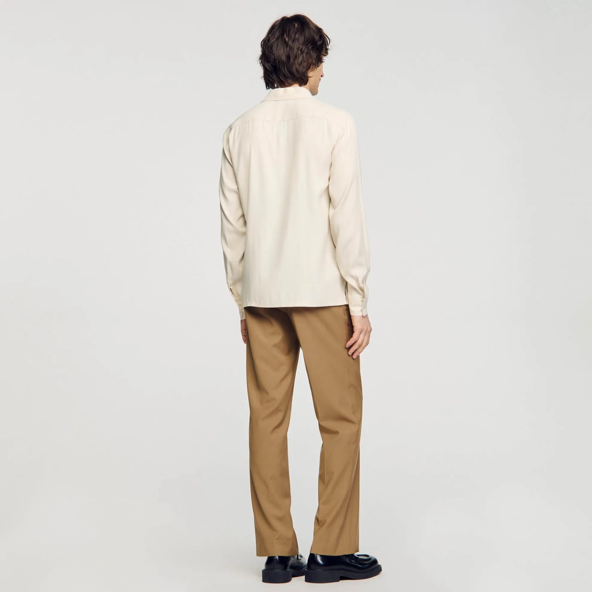 Soepel overhemd met lange mouwen met knoopmanchetten, haaienkraag en knoopsluiting.