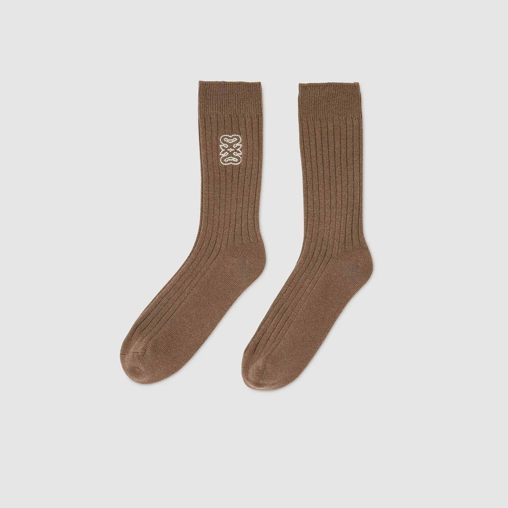 Halfhoge geribde sokken met contrasterende geborduurde dubbel S-logo’s aan de zijkanten.