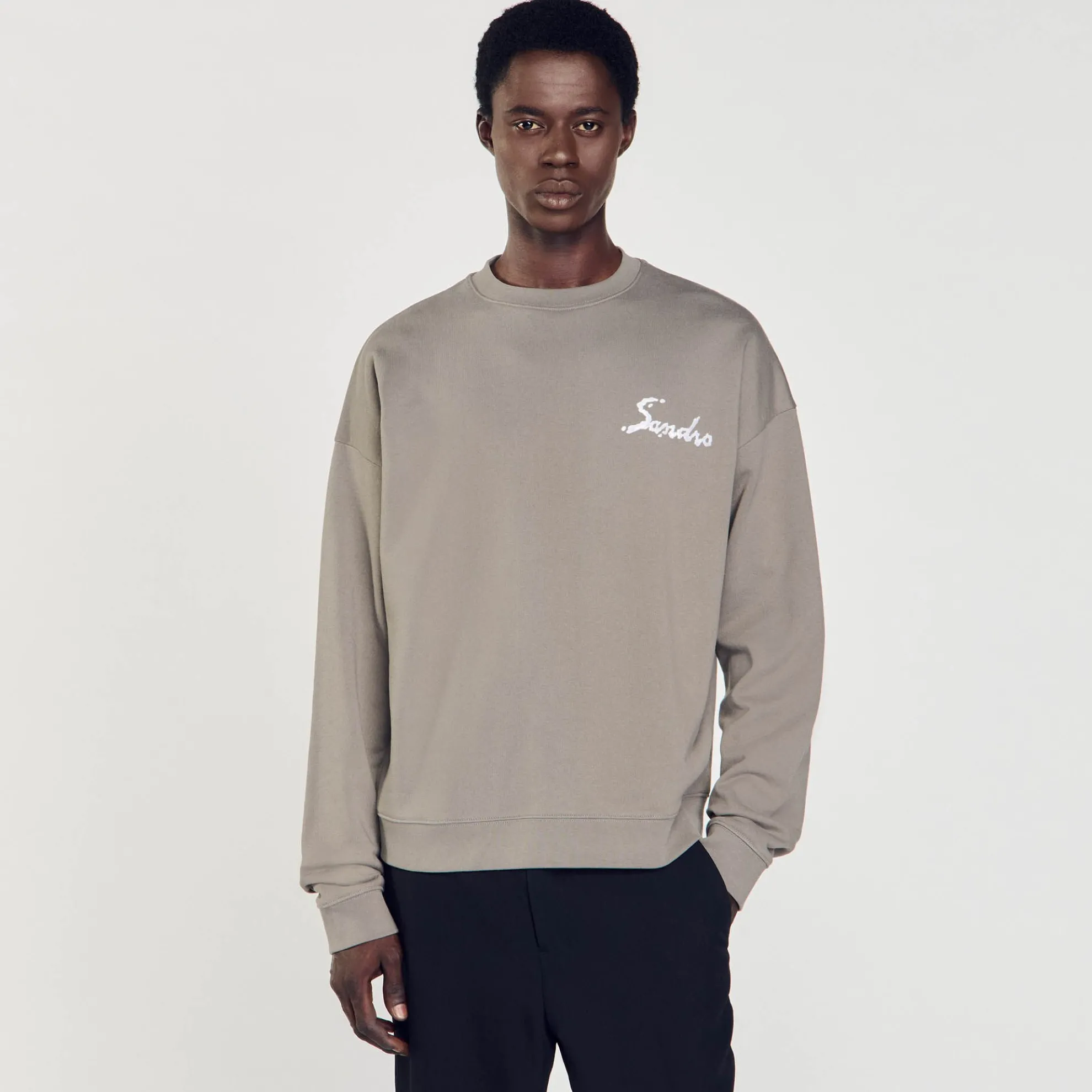 Oversized katoenen sweatshirt met ronde hals, lange mouwen en een contrasterend SANDRO logo in reliëf op de borst.