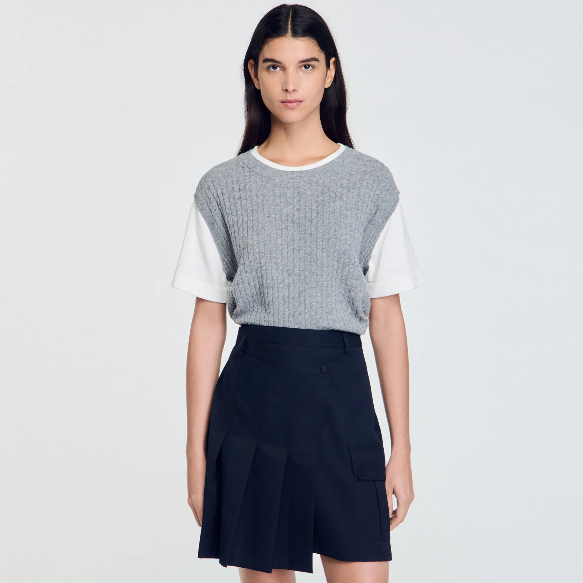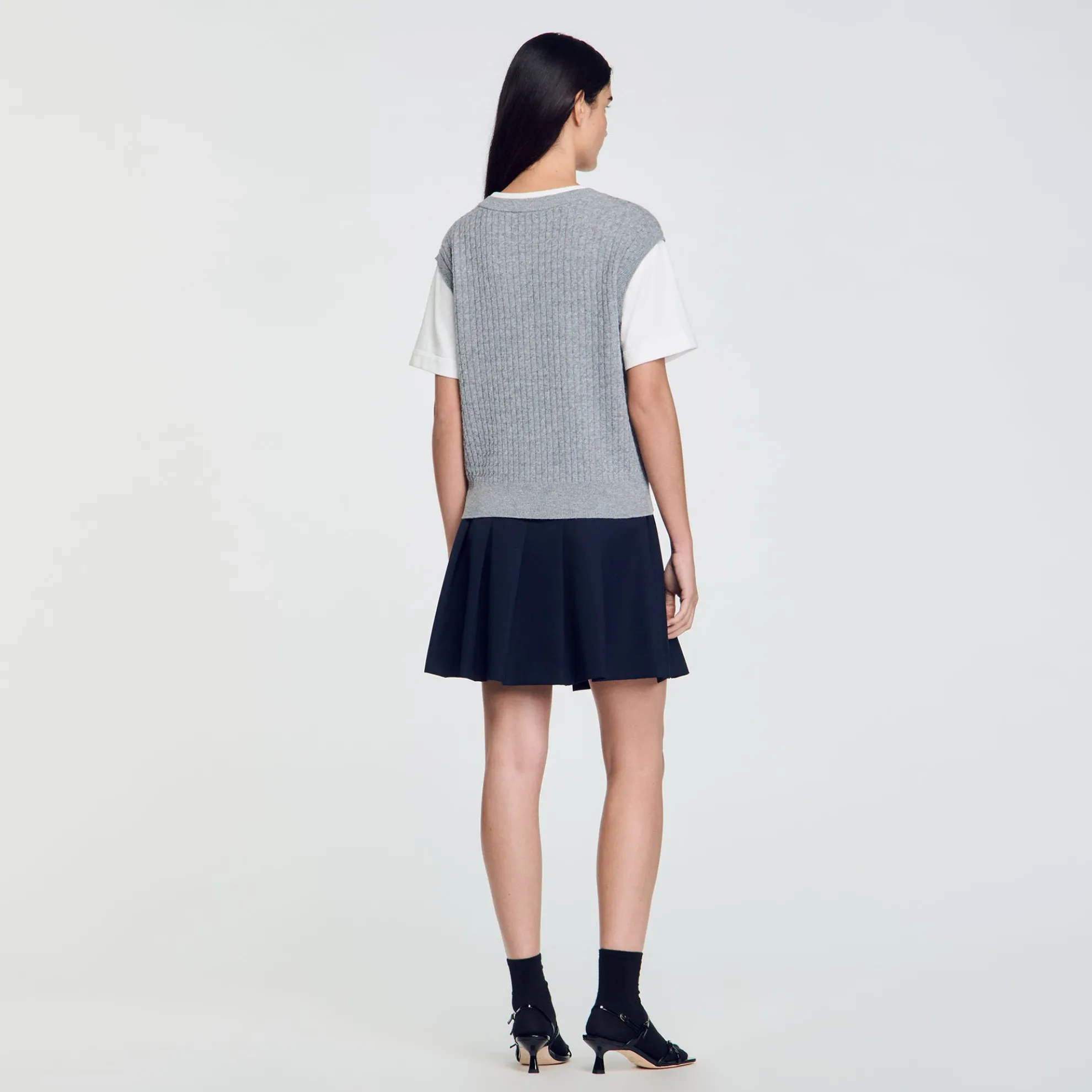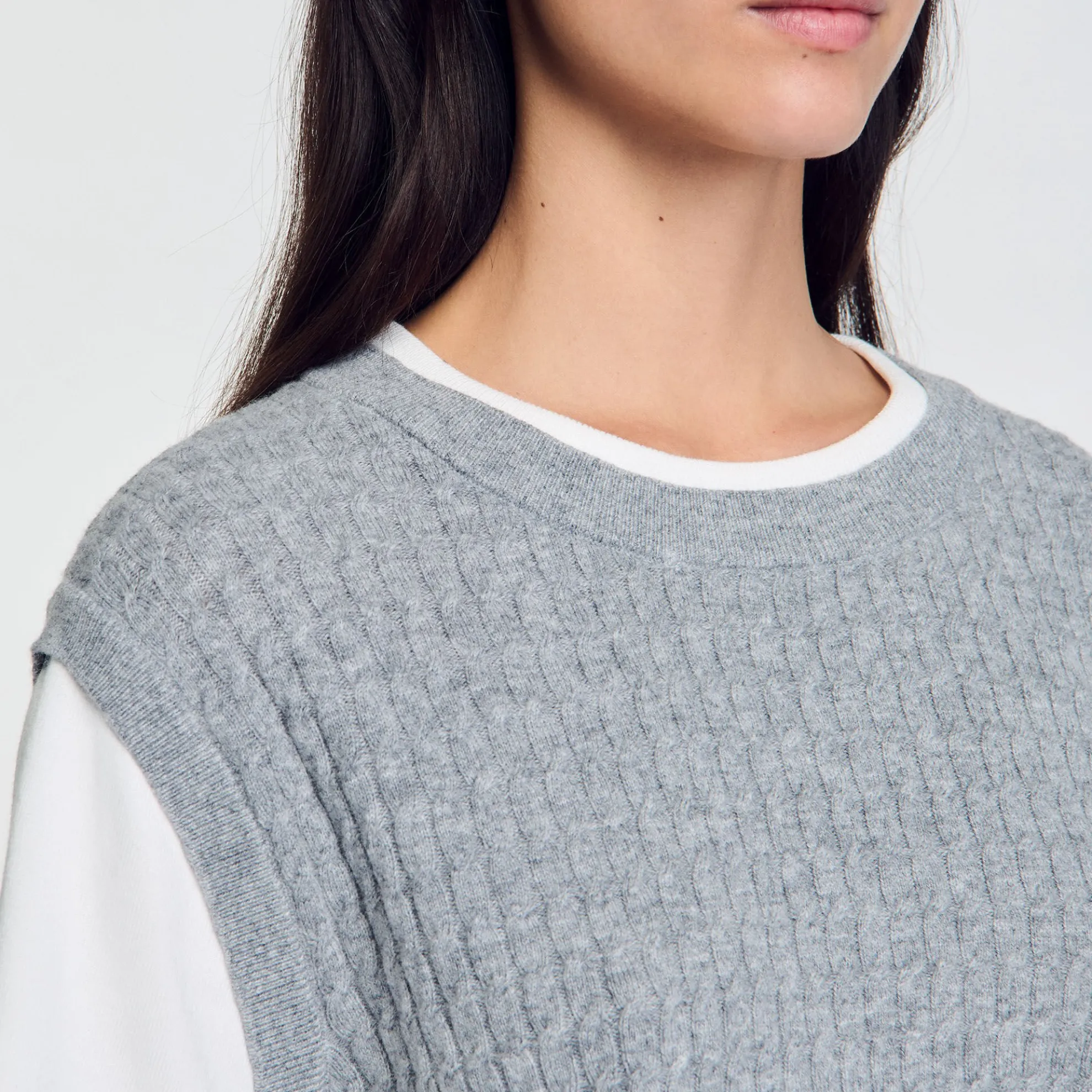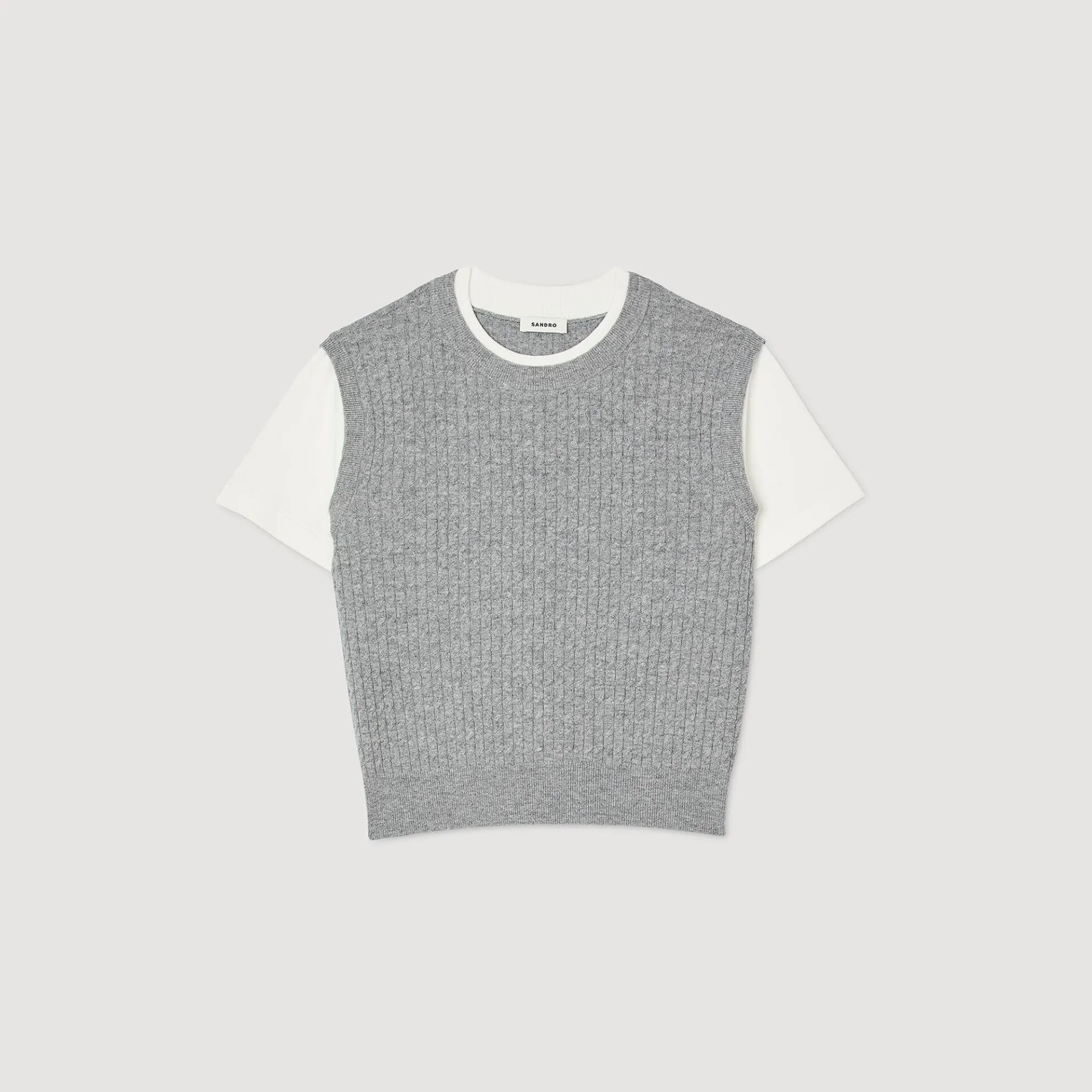Trui trompe l’oeil van ribgebreide wol en kasjmier met een ronde hals en korte contrasterende mouwen.