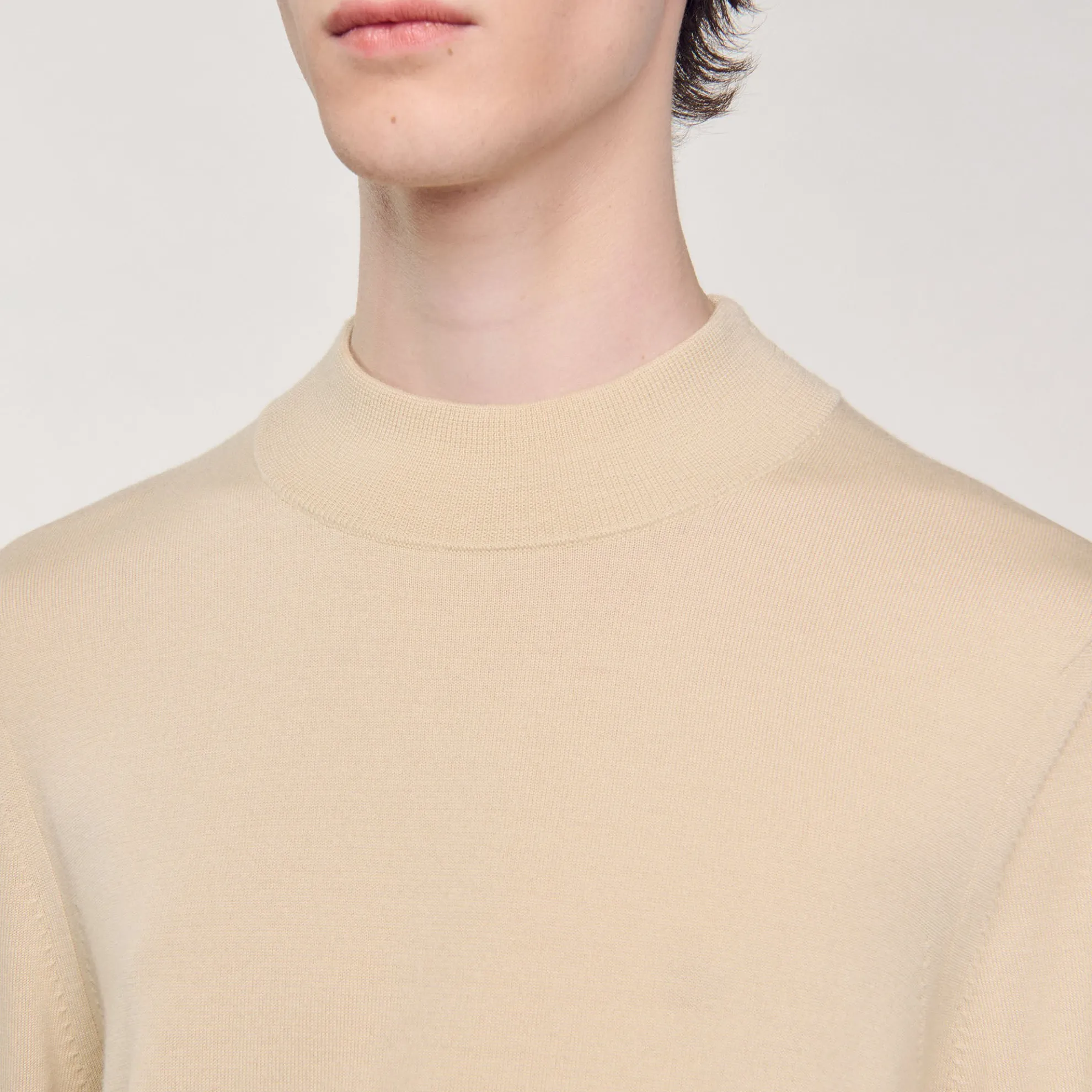 Wollen trui met lange mouwen en opstaande kraag.