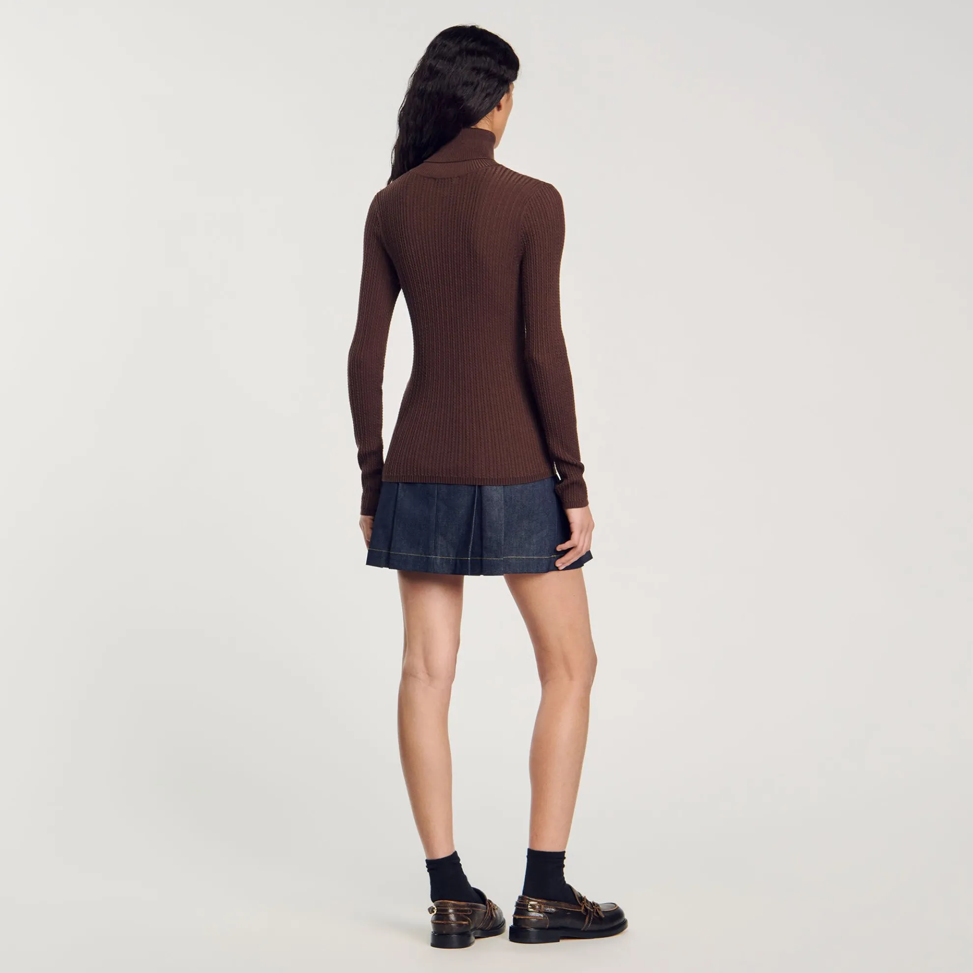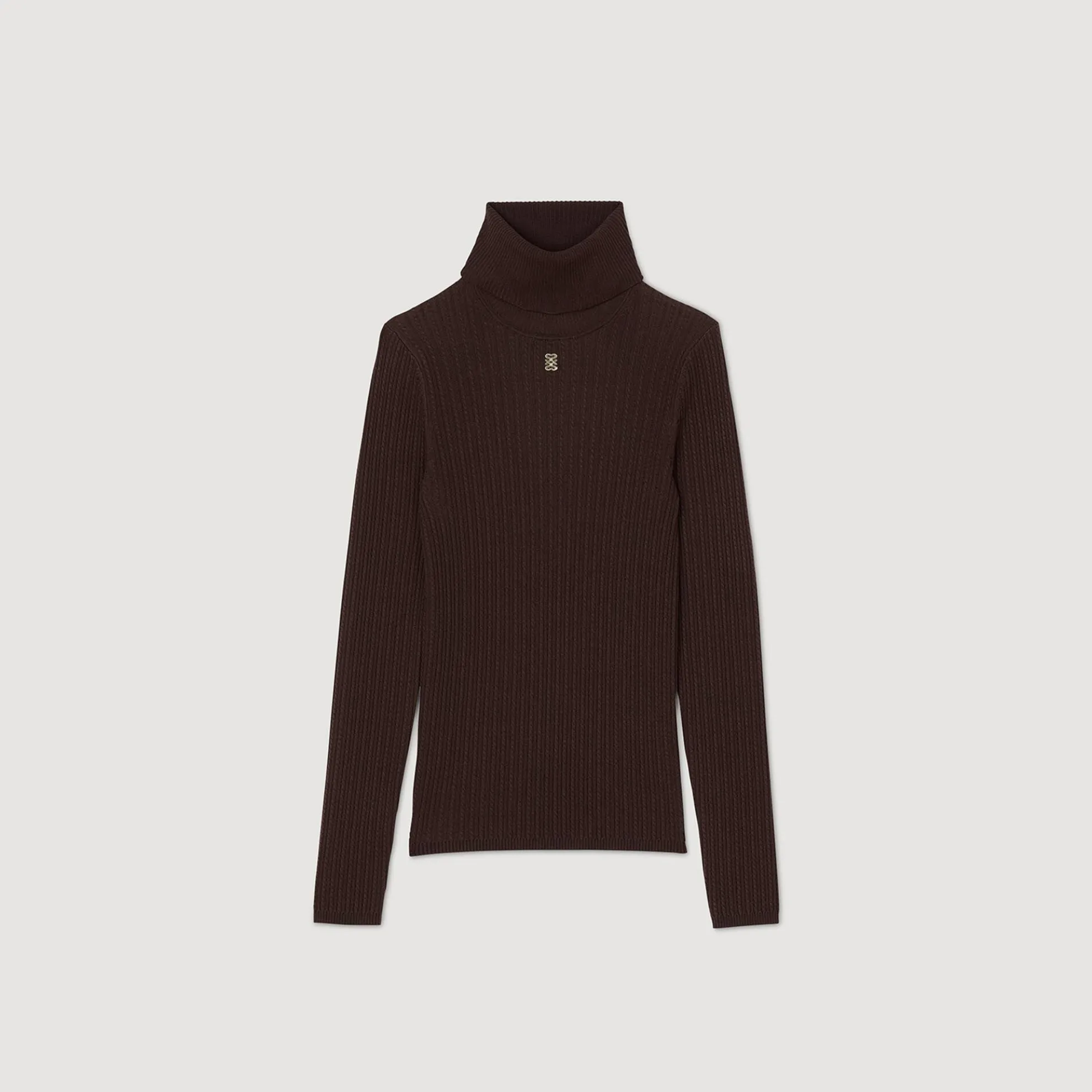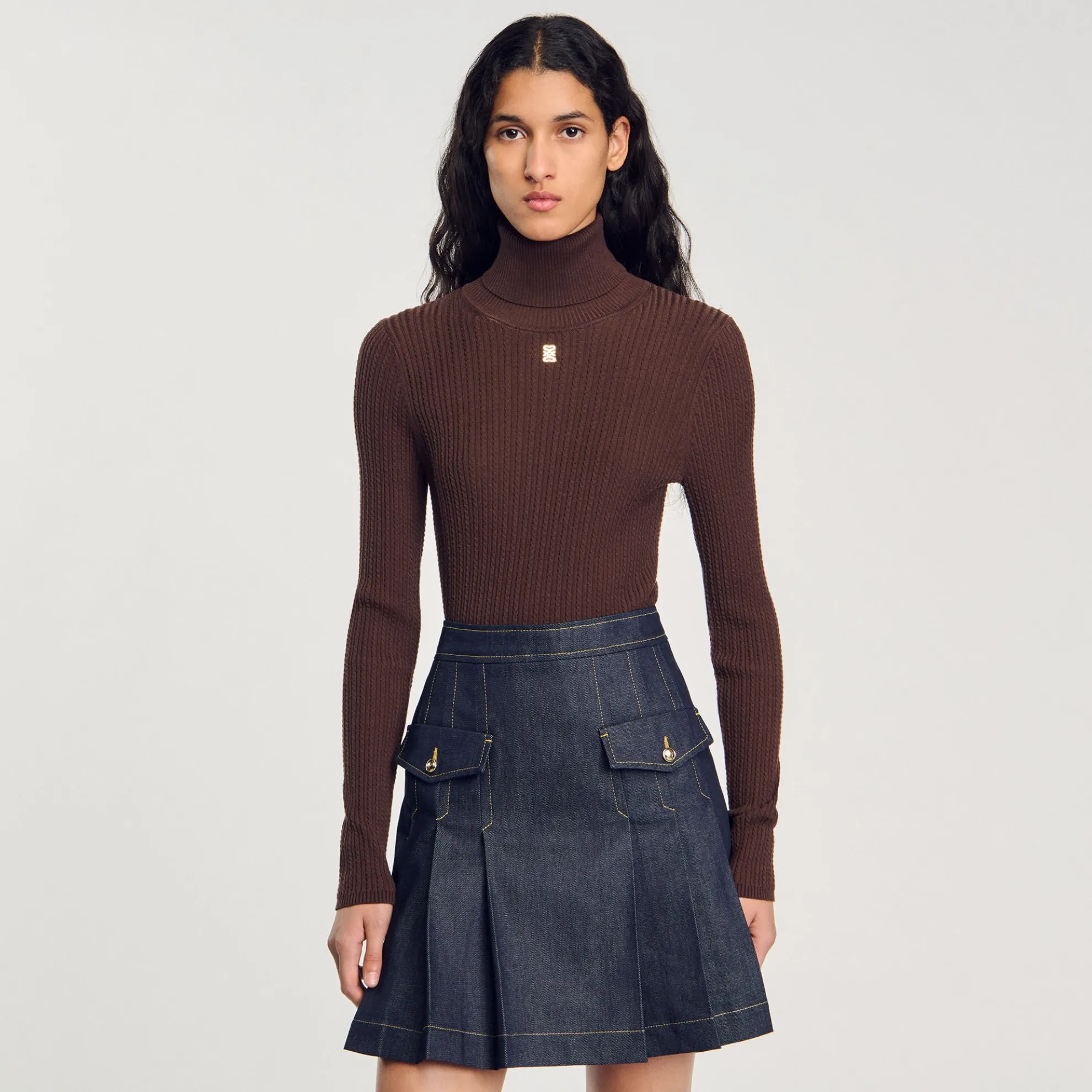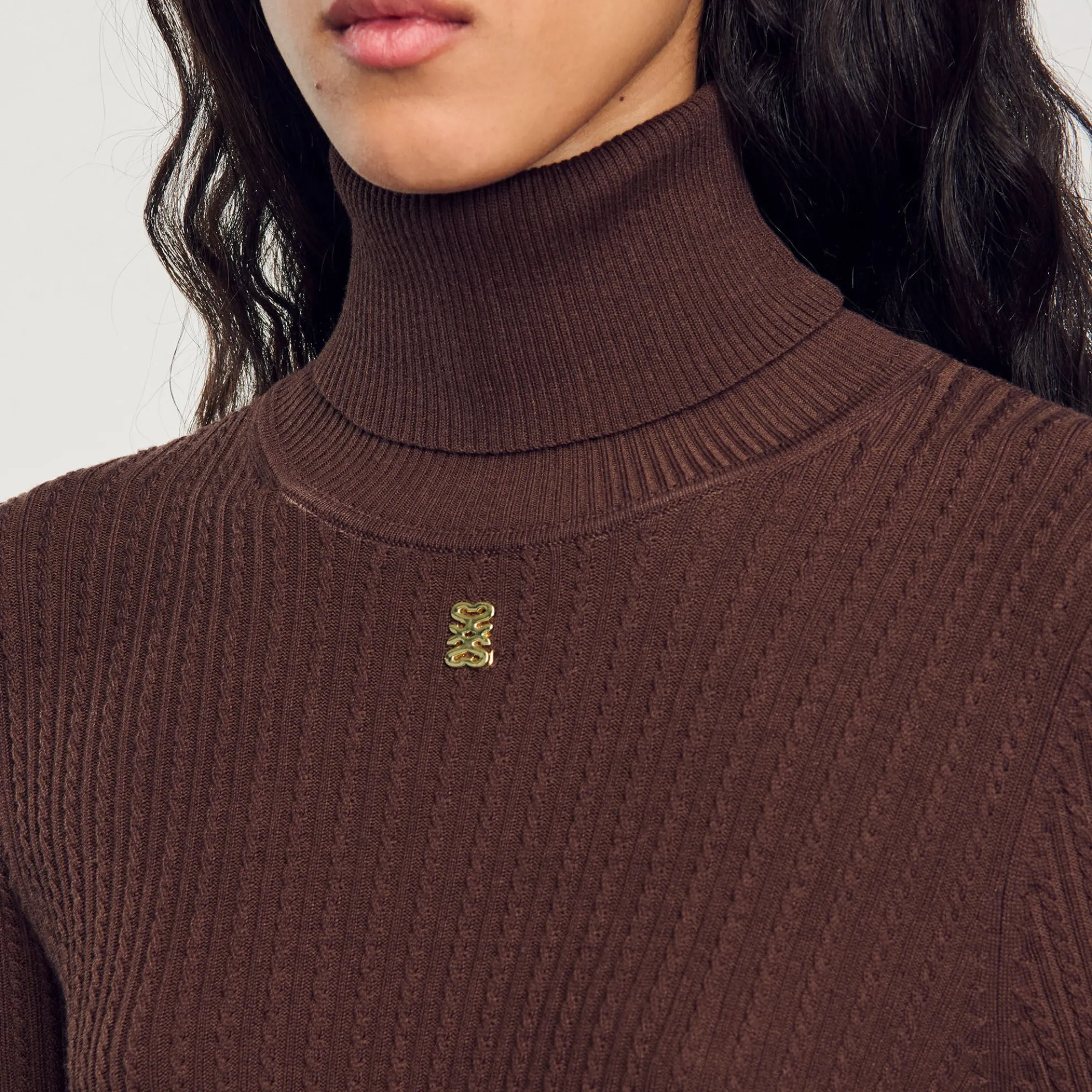 Kabeltrui met rolkraag, lange mouwen, versierd met dubbele S-logo voorop.