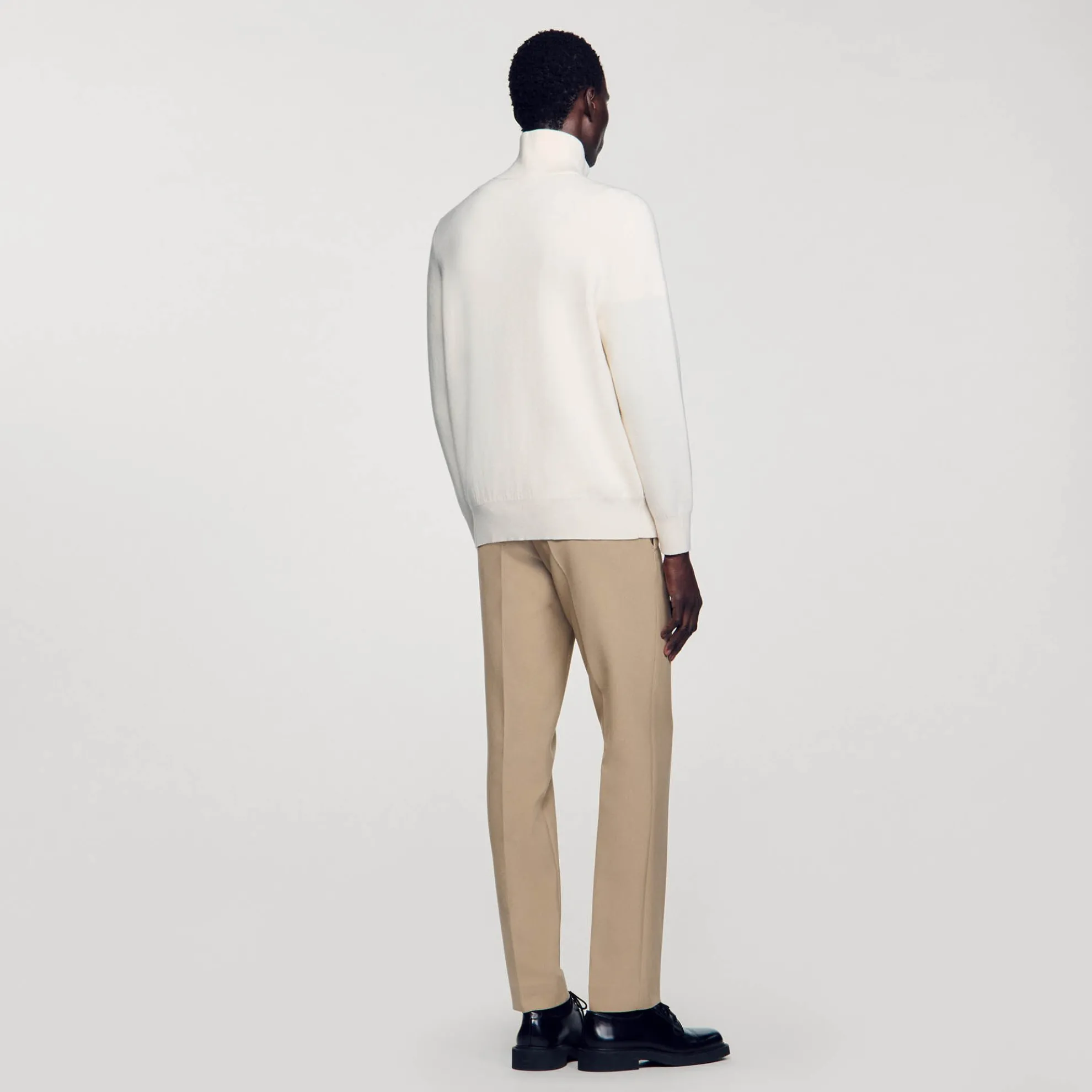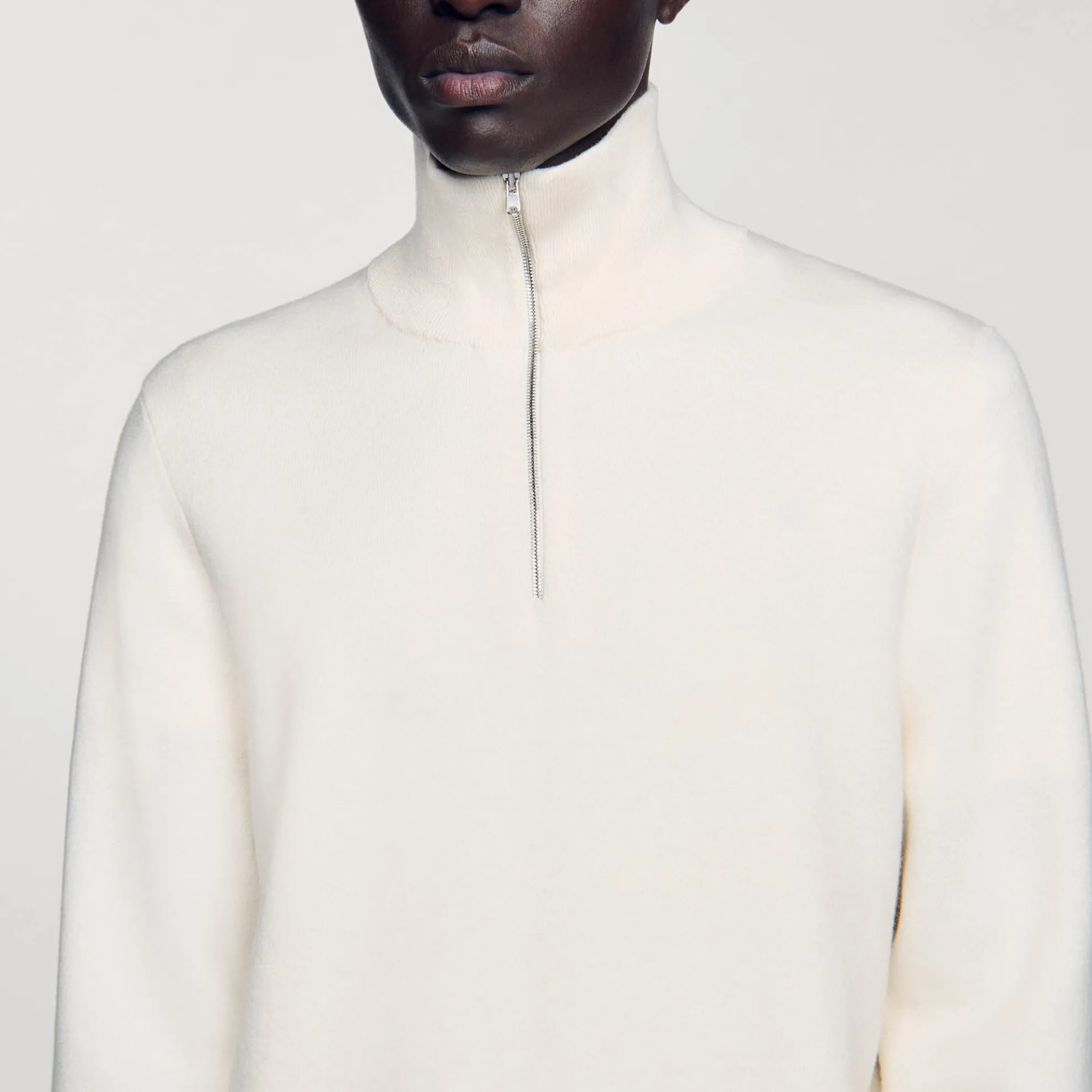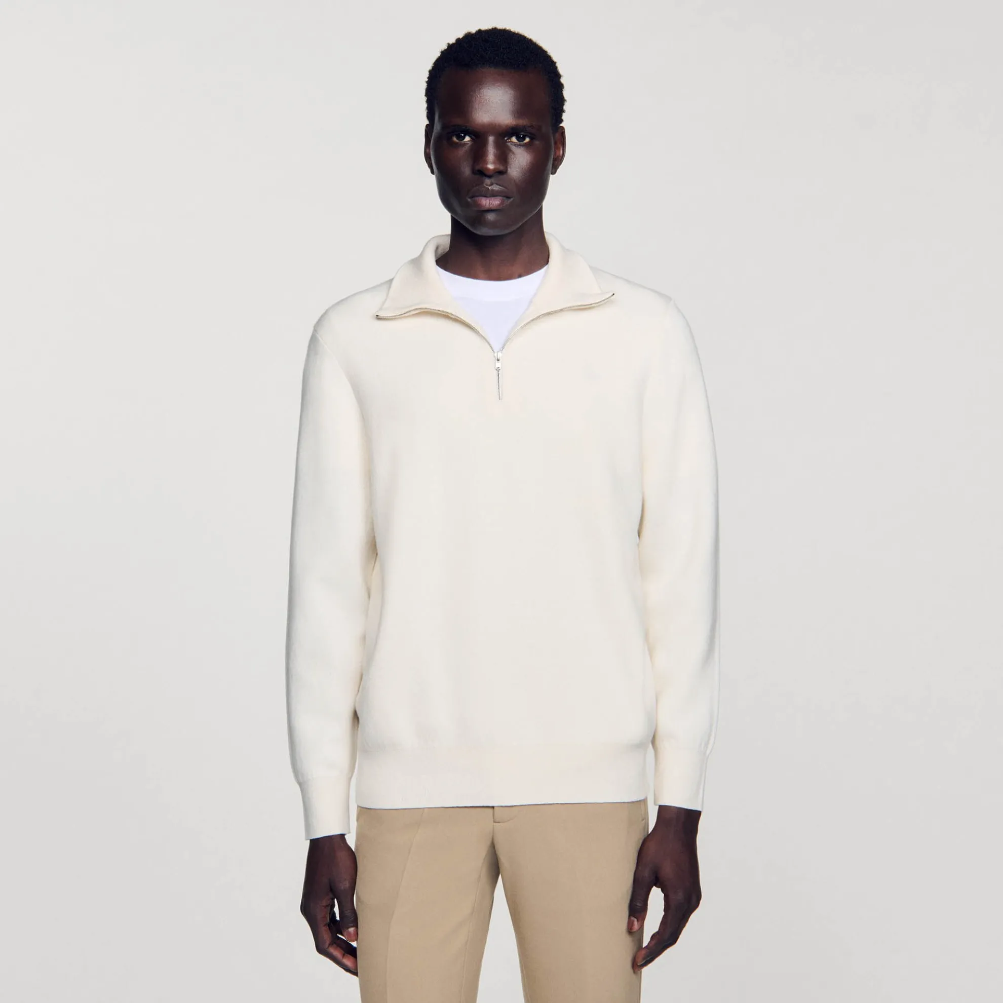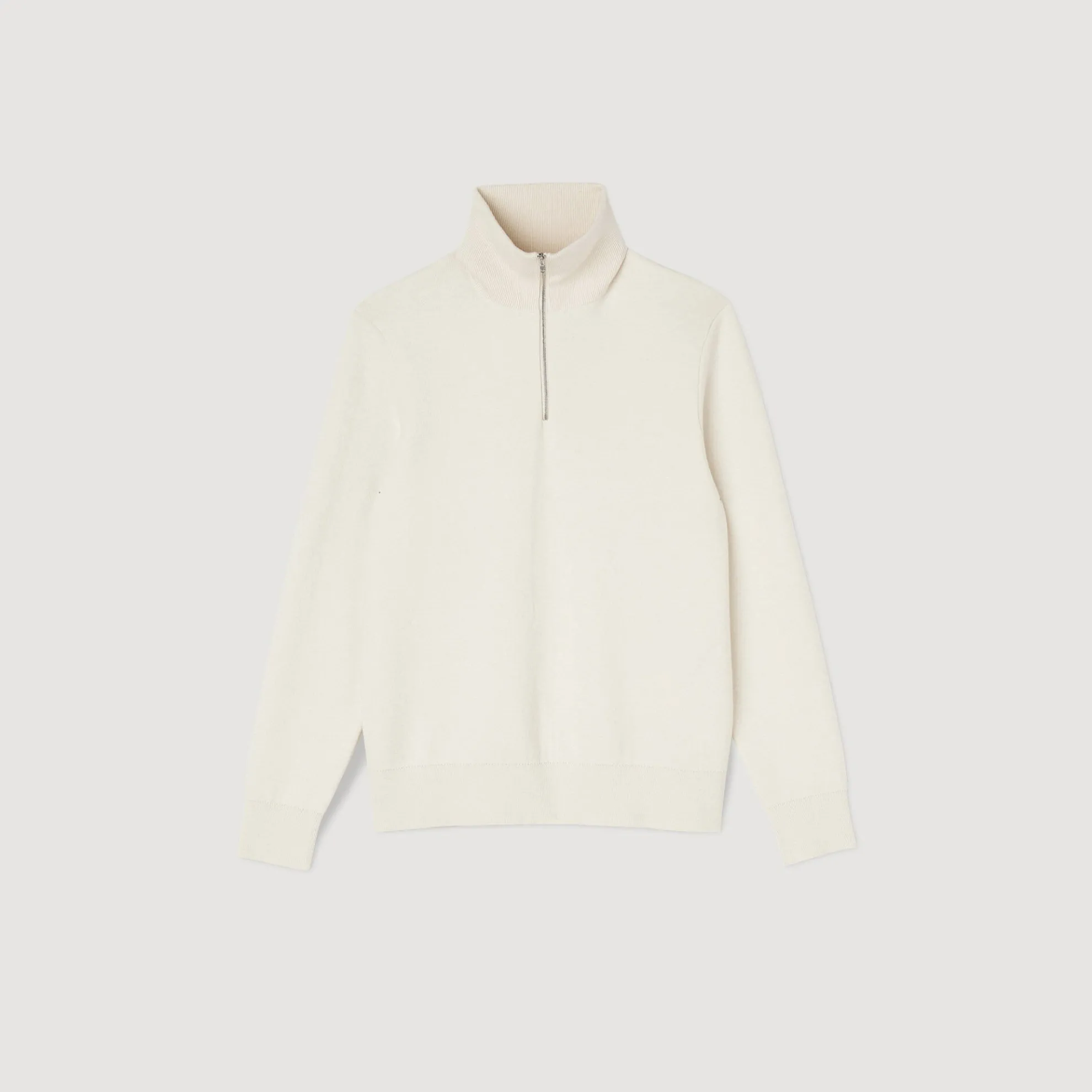 Trui van Milano breisel met geribde Troyer ritskraag, ritssluiting en lange mouwen.
