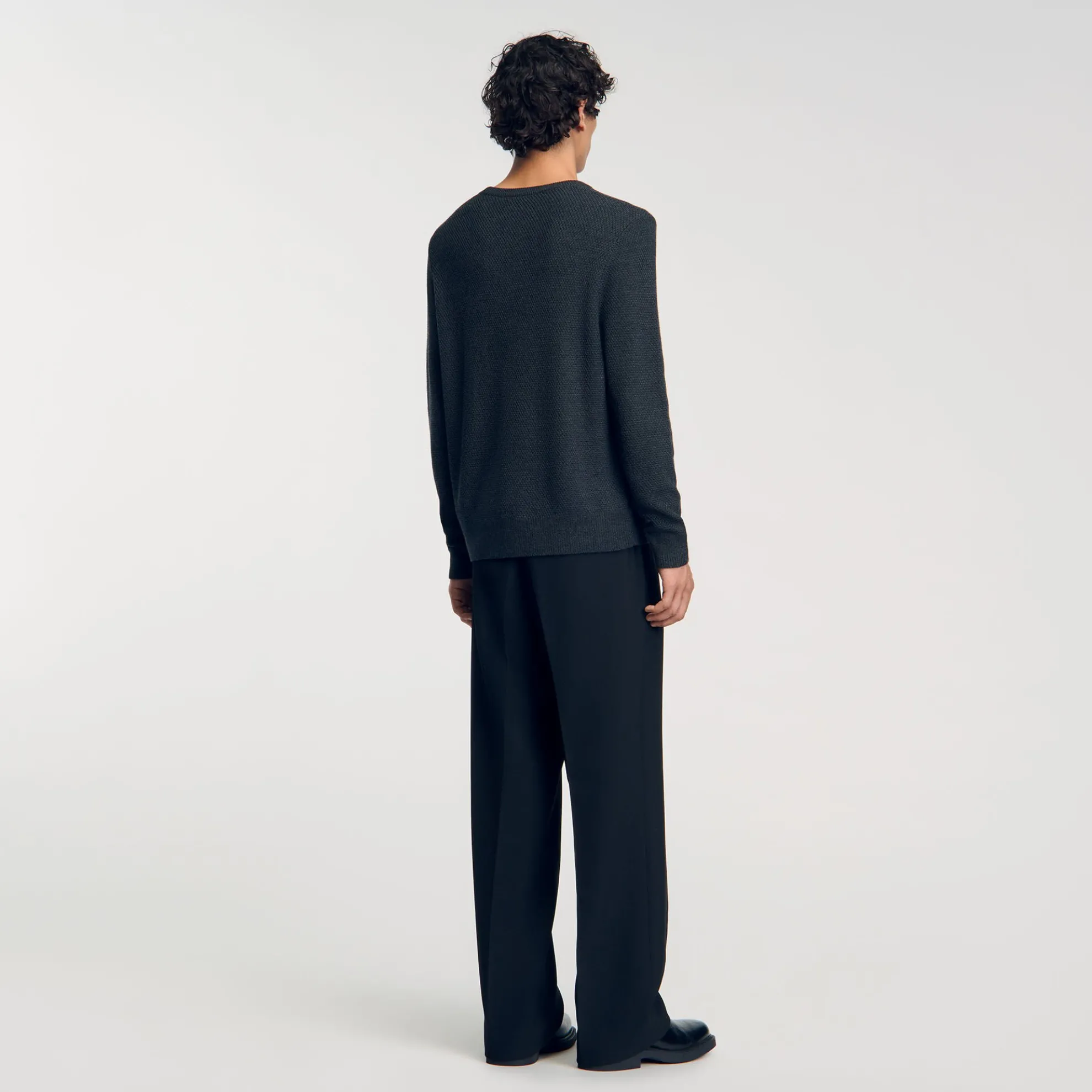 Trui Sandro Heren • Trui gebreid met siersteken • Ronde halslijn • Geribde boorden • Lange mouwen Voor een meer oversized look raden we aan om een maat groter te nemen. De wol in dit model is afkomstig van extensieve veehouderijen die het dierenwelzijn respecteren en bijdragen aan de instandhouding van de lokale biodiversiteit. Sandro zet zich in voor meer verantwoorde mode. In het kader van ons traceerbaarheidsproject met Fairly Made geven we op een geheel transparante wijze informatie over de herkomst, productie en milieu-impact van onze kleding. Alle stappen in het fabriceren en realiseren van deze trui zijn uitgevoerd in fabrieken in China die sociaal gecertificeerd zijn door zeer strenge onafhankelijke keurmerken, en maken gebruik van verantwoorde wol. De trui heeft een traceerbaarheidsscore van: 4.1/5.