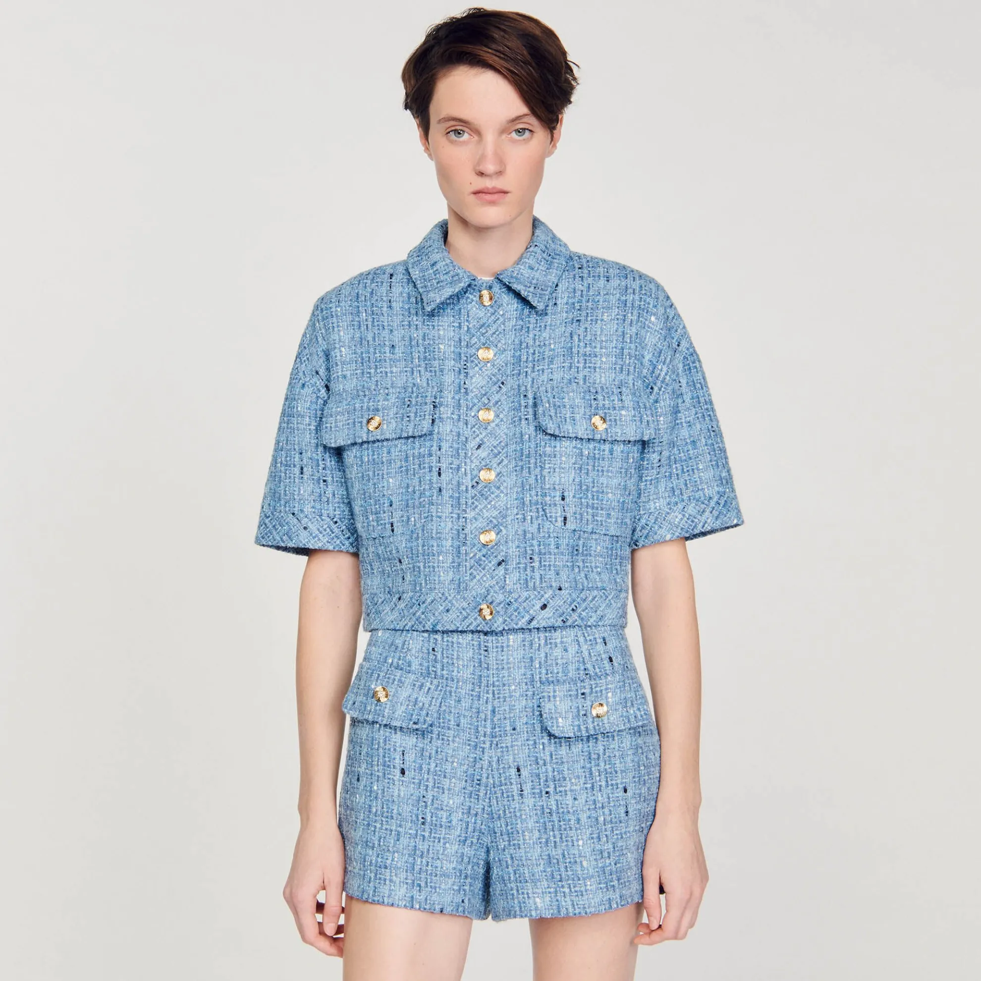 Mooie tweed short met hoge taille en klepzakken in de taille versierd met Sandro knopen.