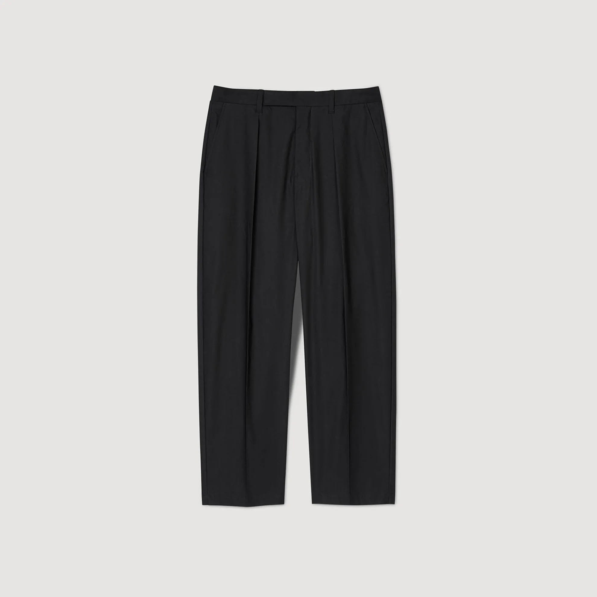 Wijdvallende pantalon met plooi op de broekspijp, Italiaanse zakken en paspelzakken met knopen op de achterkant.