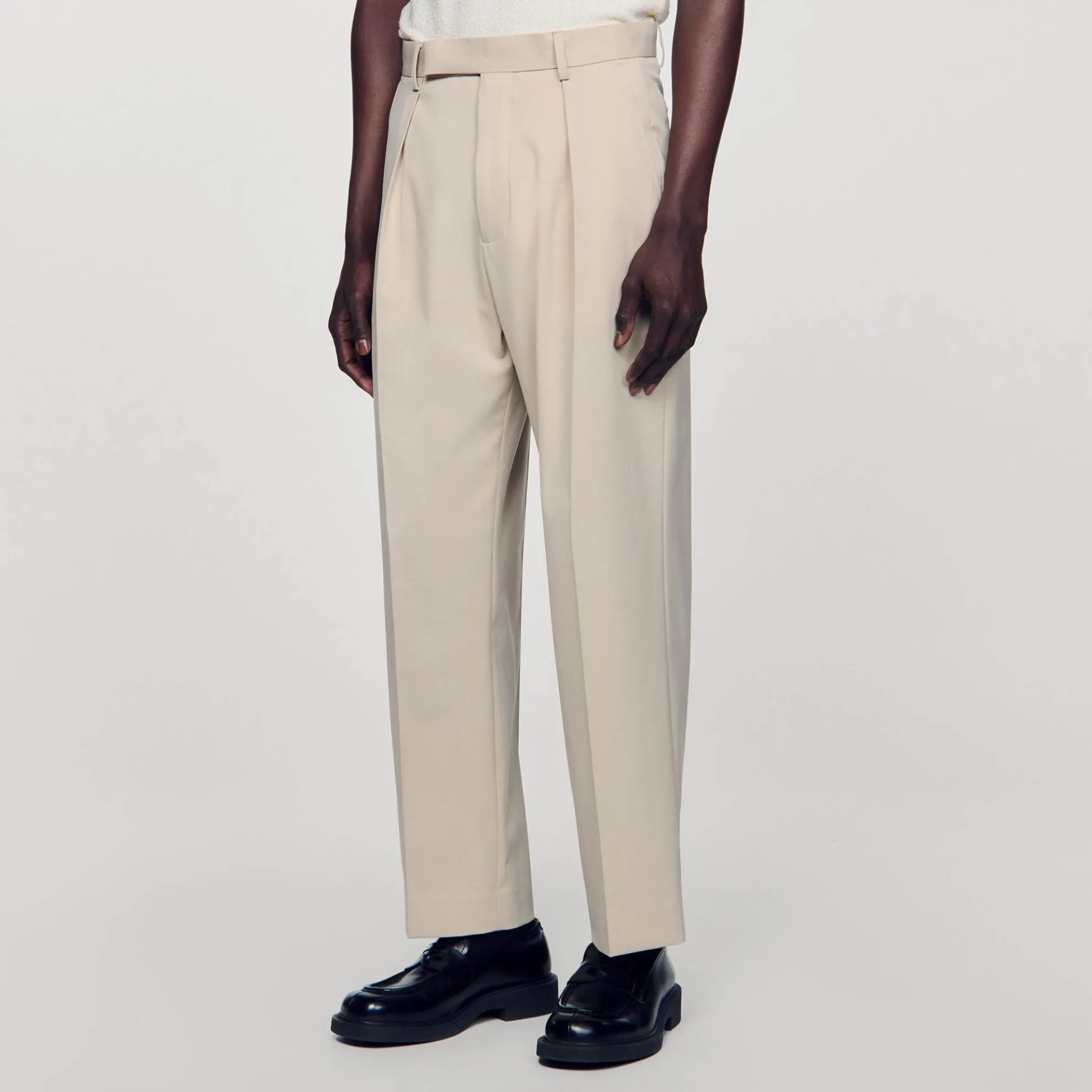 Wijdvallende pantalon met plooi op de broekspijp, Italiaanse zakken en paspelzakken aan de achterkant.